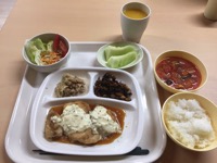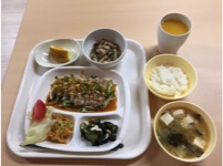寮生の朝食・夕食は、寮専用の食堂で調理しています。 管理栄養士のつくるメニューにより、美味しく栄養満点の食事が摂れます。 昼食は野田学園食堂で、ユース生専用食を用意しており、栄養面、ボリュームを考慮して作っていただいております。 また、試合の日には消化の良いうどんなどユースの活動を考慮したメニューが提供されます。ドリンクは牛乳、オレンジジュース、豆乳、麦茶が準備されています。
