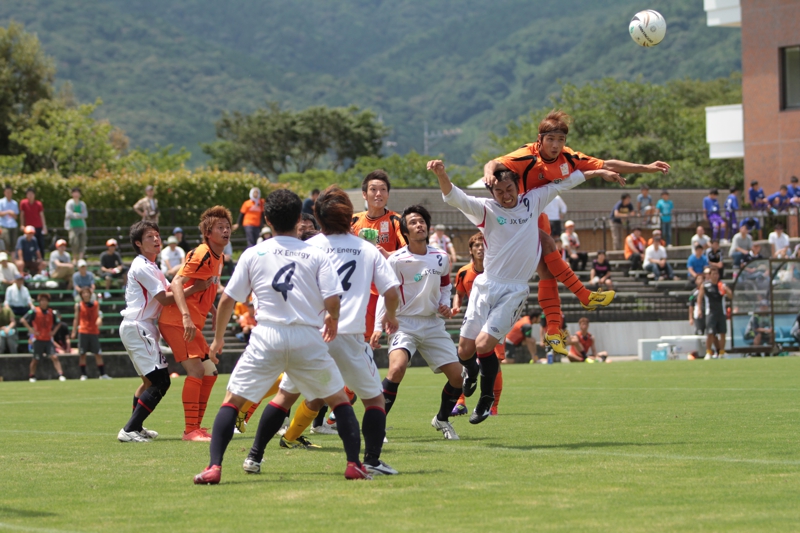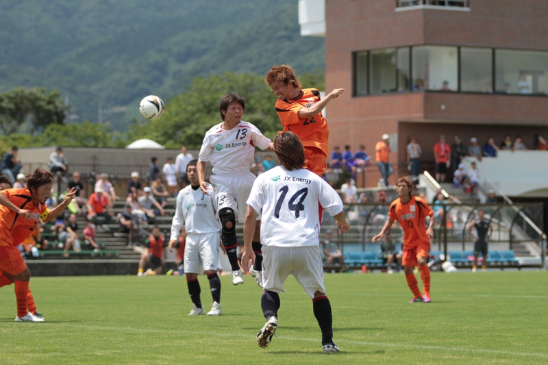 レノファ山口 JXエネルギー水島 0 前半 1 2 後半 1 57分 ♯2 伊藤(♯15 碇野) 83分 ♯9 キム 得点 21分 ♯11 竹田(♯10 鈴木) 90+4分 ♯3 杉原(♯4 田辺)