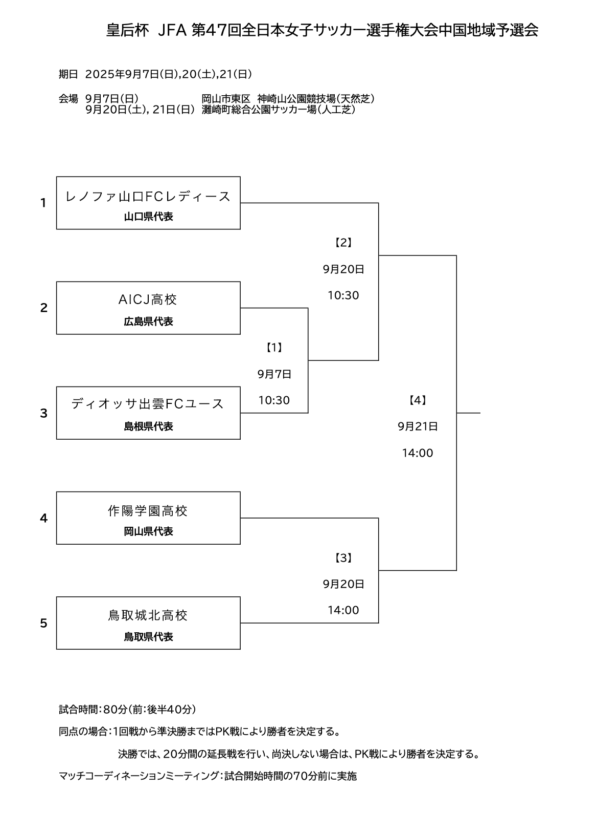 なお、優勝の場合は、「皇后杯JFA第47回全日本女子サッカー選手権大会」に出場いたします。