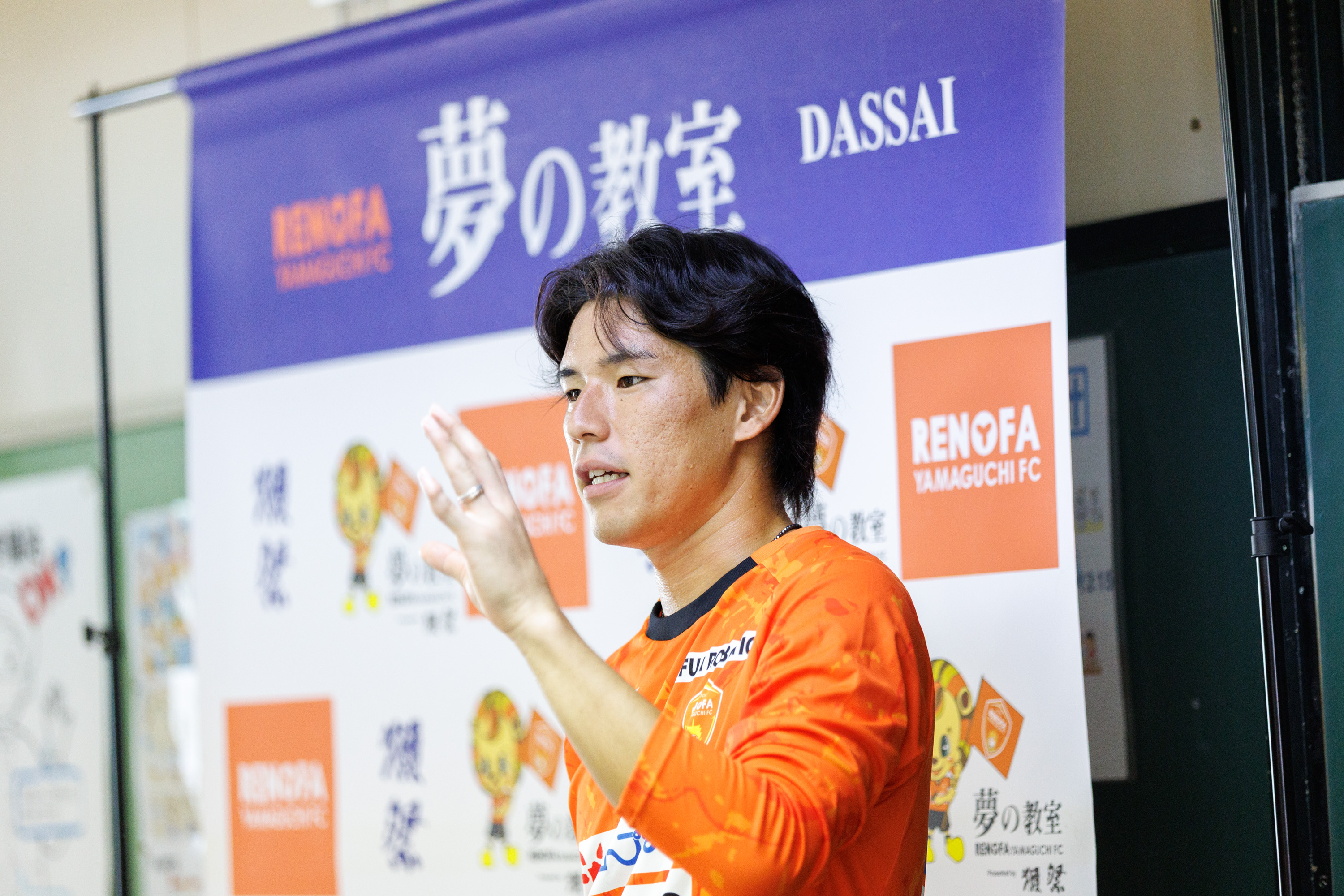 レノファ山口FCと世界に展開する「獺祭」がおこなう初めてのプロジェクトであり、山口県内の小学校を対象にレノファ山口FCの選手・スタッフが「夢」について語り、交流することで、勇気を持つこと、希望を持つことの意味を伝えます。