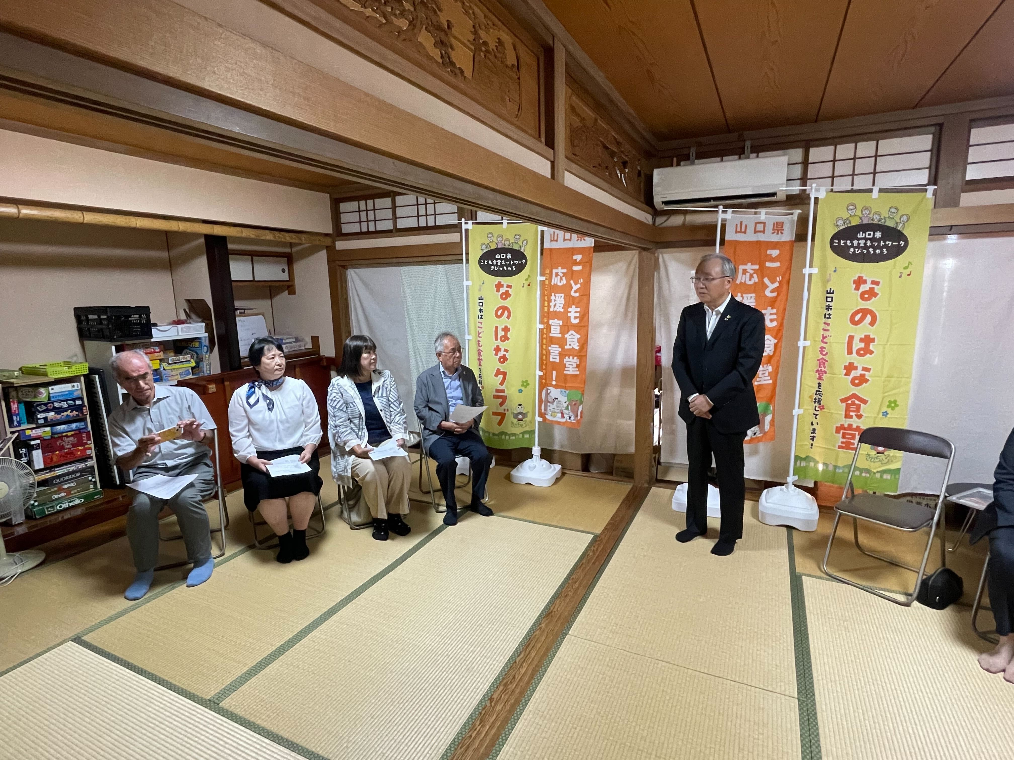 19日(金)山口市のなのはなハウスにて山口マツダ株式会社より取締役副社長 恵木賢治様、取締役大原諒子様、不二輸送機工業株式会社より代表取締役社長 米中郁雄様、阿知須地区社会福祉協議会 会長 本永勝昭様、山口市内の3つの子ども食堂にご参加いただき贈呈式を実施いたしました。