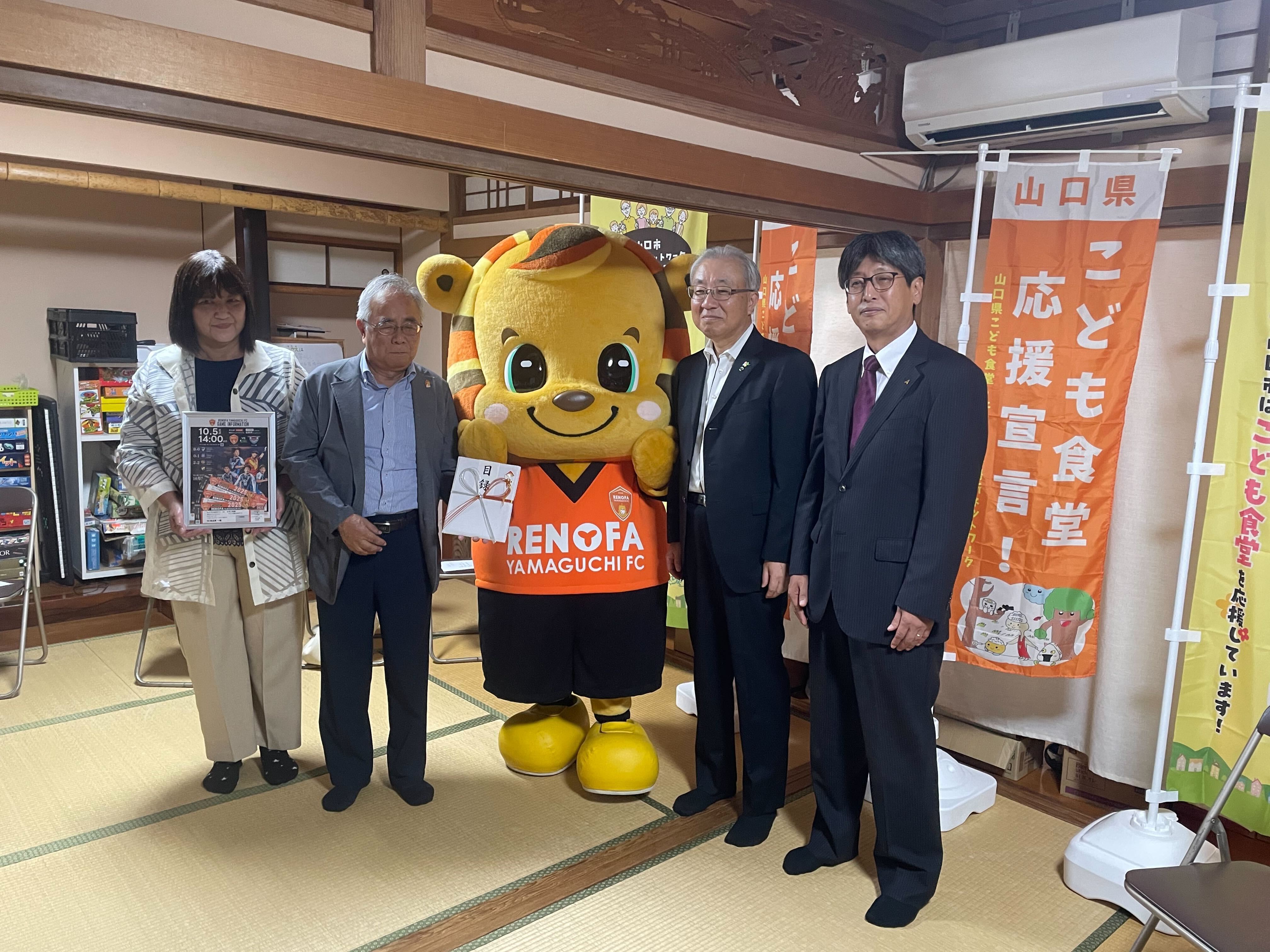 このたび、オフィシャルトップパートナーの山口マツダ株式会社様と不二輸送機工業株式会社様より、山口市内の子ども食堂へレノファ山口FCホームゲーム観戦チケットを寄付いただきました。