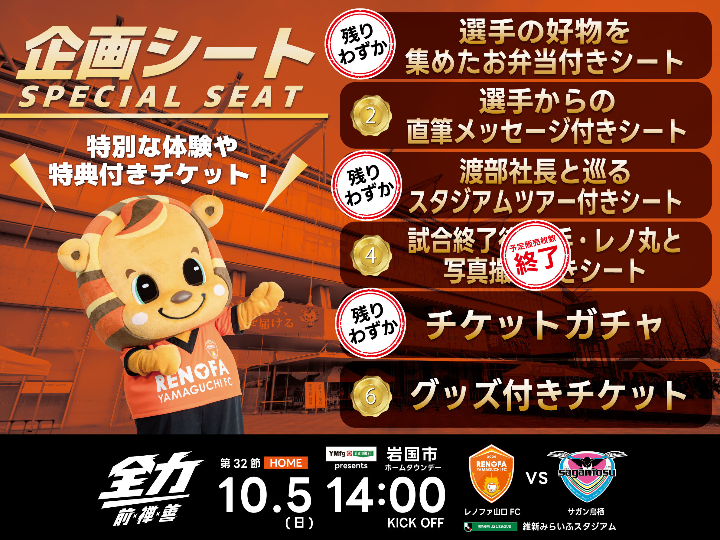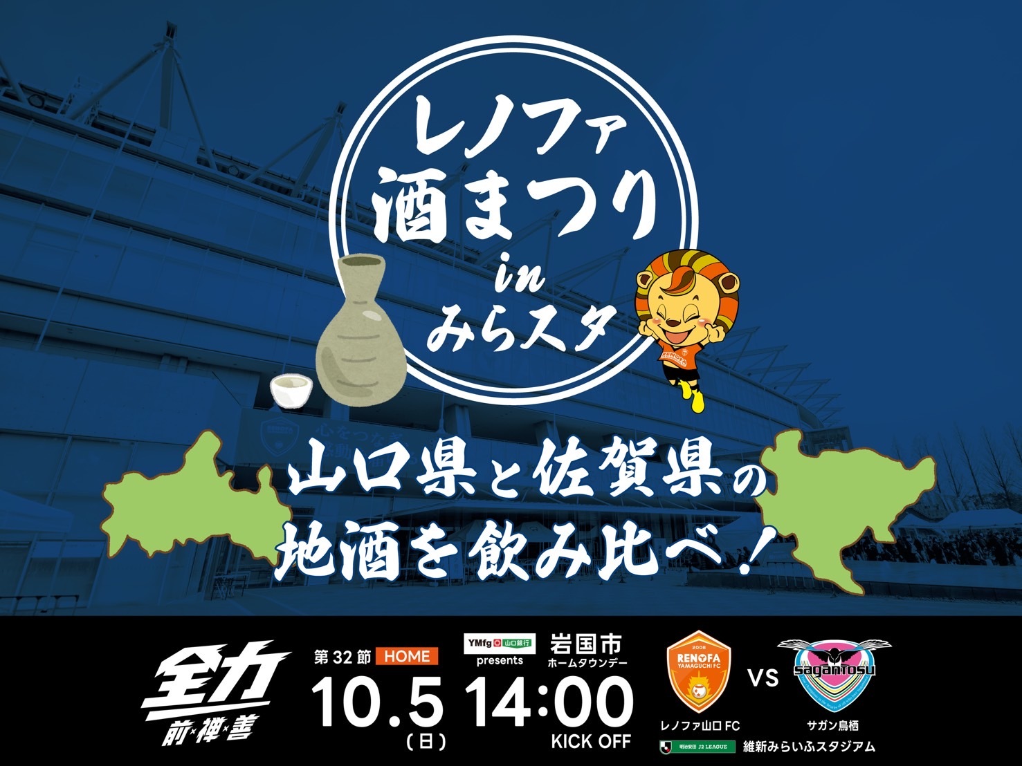 このたび、10月5日(日)維新みらいふスタジアムにて開催する2025明治安田J2リーグ第32節サガン鳥栖戦の冠パートナーは山口銀行様です。