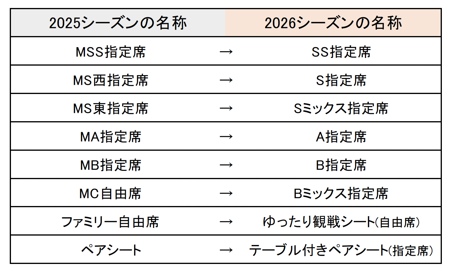 ・Bミックス指定席(2025シーズンMC自由席)