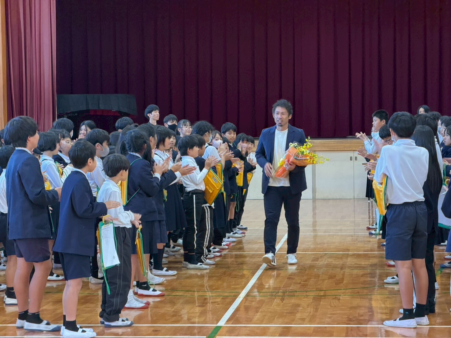 両校あわせて約400名の児童が参加し、山瀬さんがこれまでのキャリアで培ってきた経験や思いを通じて、「夢に向かって挑戦することの大切さ」や「仲間を大切にする心」など、“生き方”について考える貴重な時間となりました。