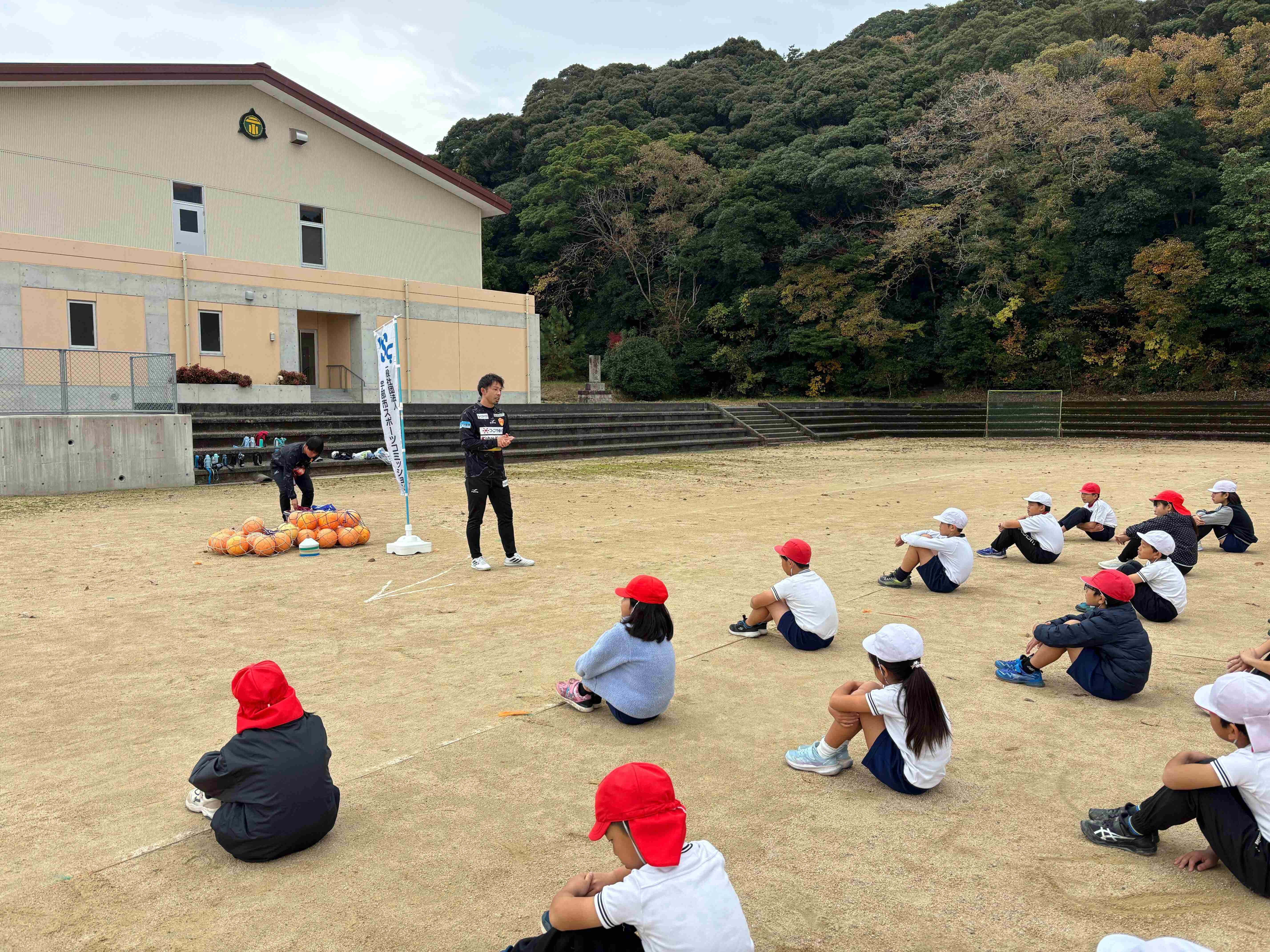 11/27(木)に宇部市立二俣瀬小学校にて宇部市スポーツコミッション主催による「宇部市こどもスポーツ夢教室」が行われ、山瀬功治クラブ・コミュニティ・コネクターが参加しました!