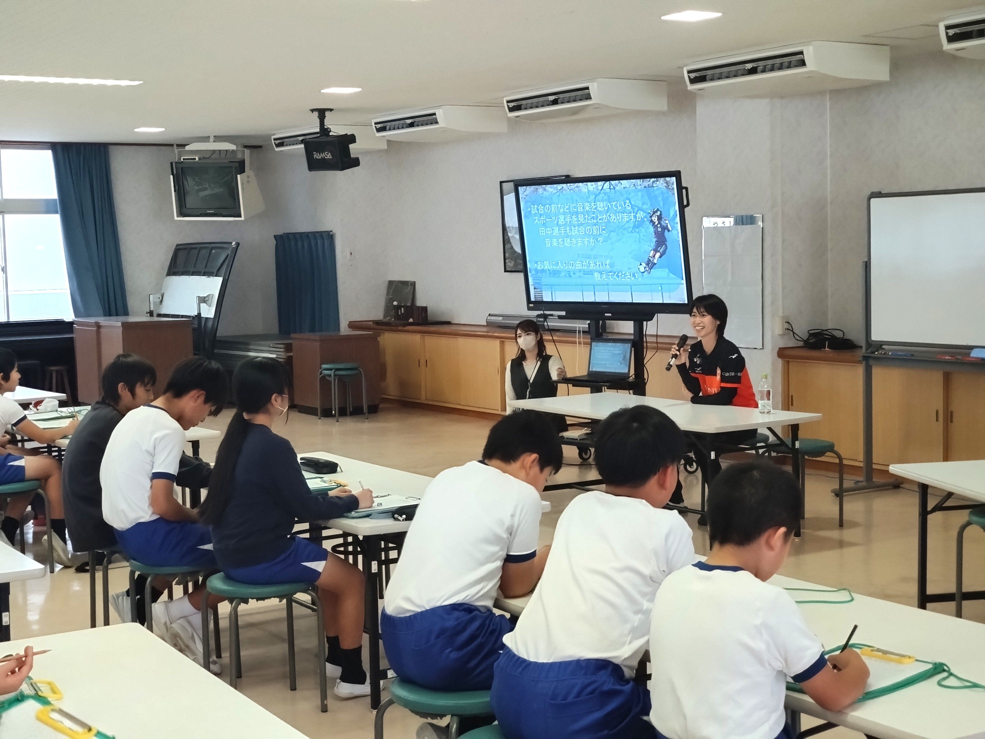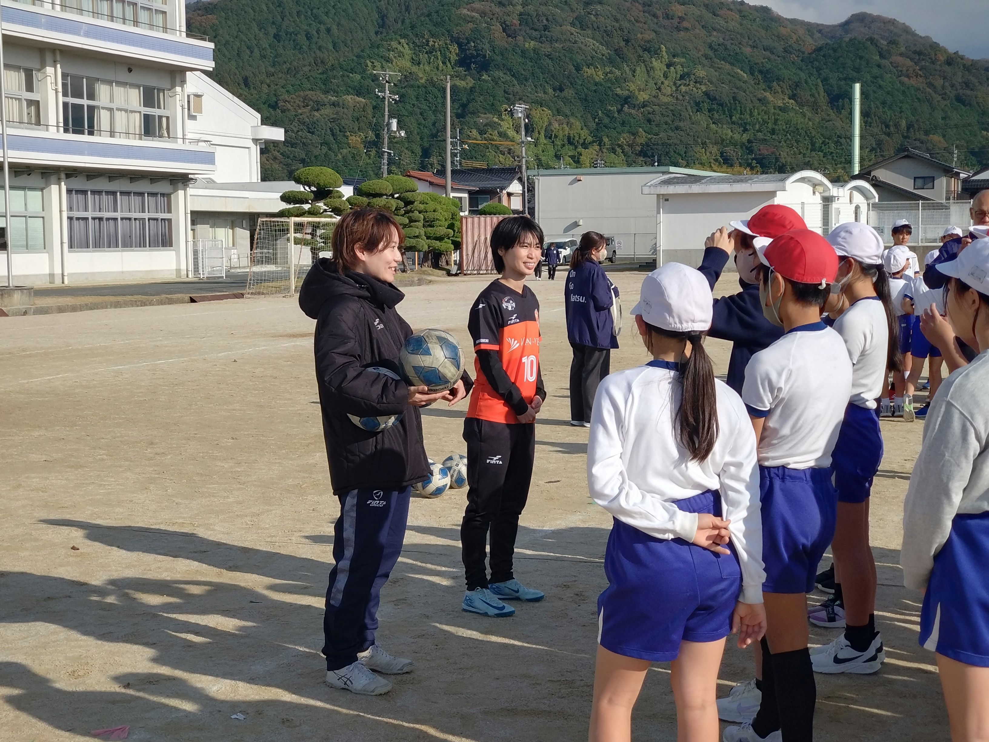 11月27日(木)レノファ山口FCレディースの田中陽子選手、レノファ山口FCアカデミーの秋月優作U12コーチが、母校である小郡小学校を訪問しました。