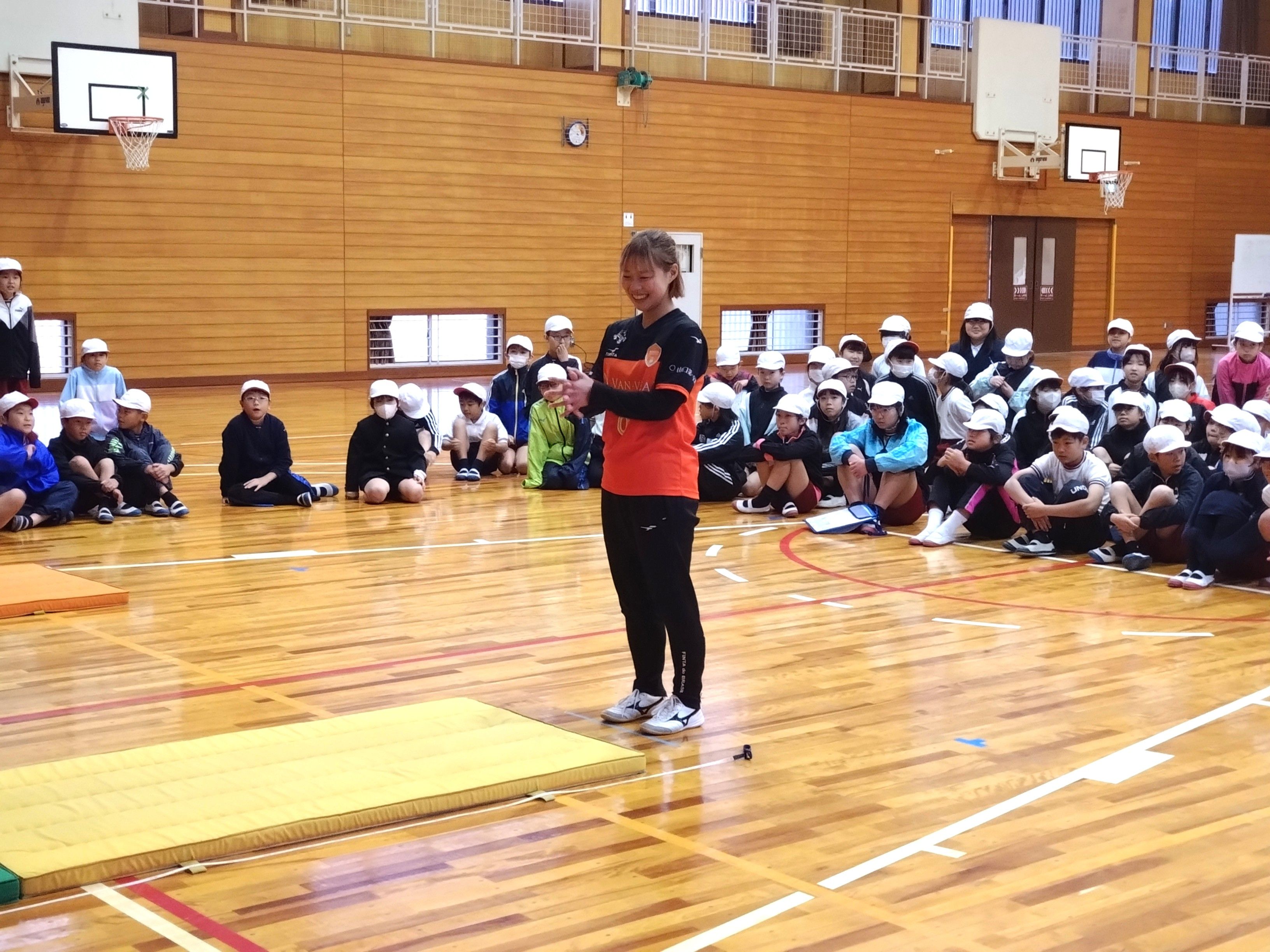 12月4日(木)にレノファ山口FCレディースの岡樹選手が山口県の「プロスポーツチームとの連携による体力向上推進事業」で萩市立明倫小学校を訪問しました!