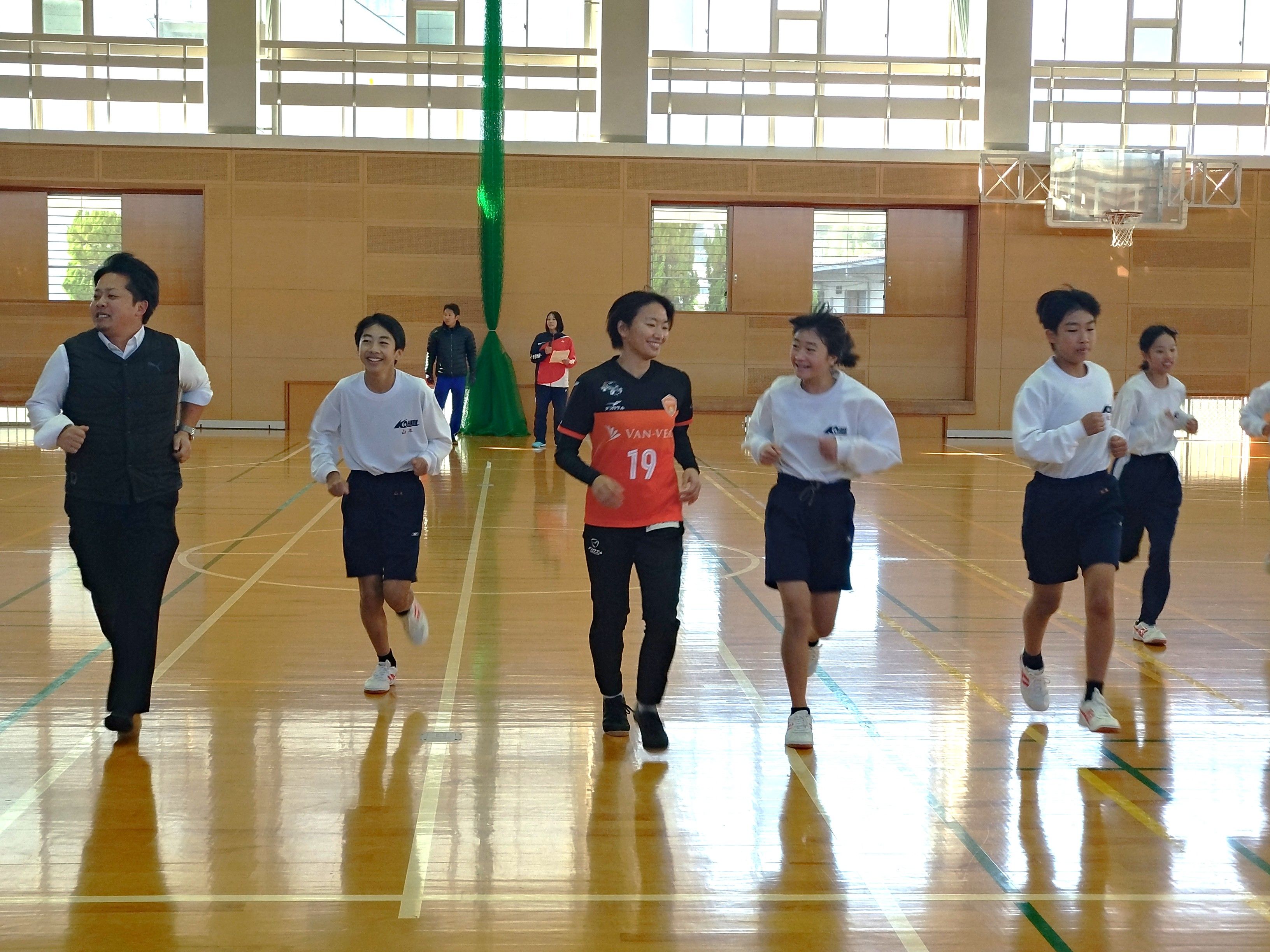 12月10日(水)にレノファ山口FCレディースの岡樹選手、宮﨑珠里選手が山口県の「プロスポーツチームとの連携による体力向上推進事業」で山口市立鴻南中学校を訪問しました!