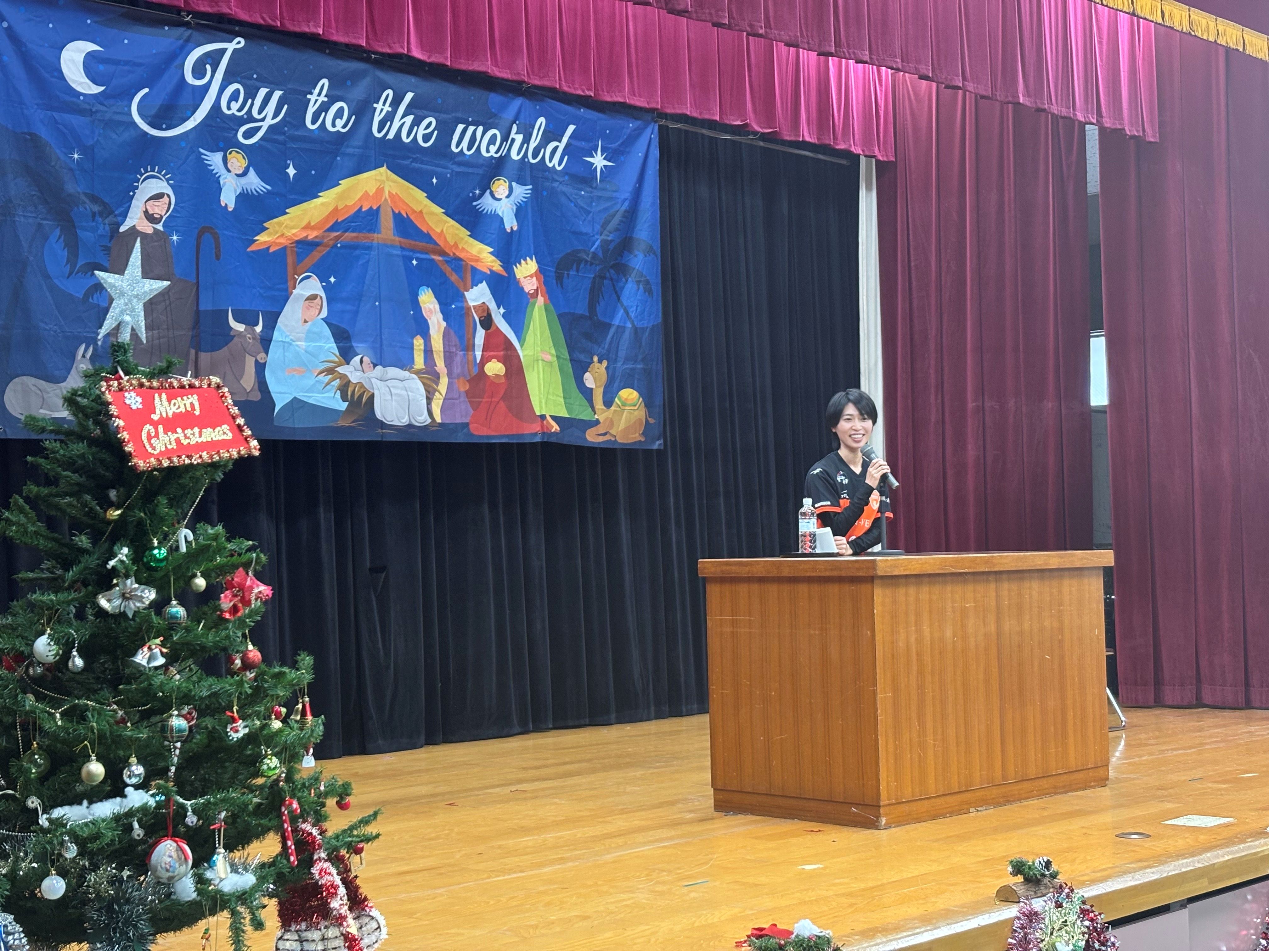 12月13日(土)に山陽小野田市内のサビエル高校で開催されたクリスマスマーケットにて、レノファ山口FCレディースの田中陽子選手が講演とサッカー教室を行いました。
