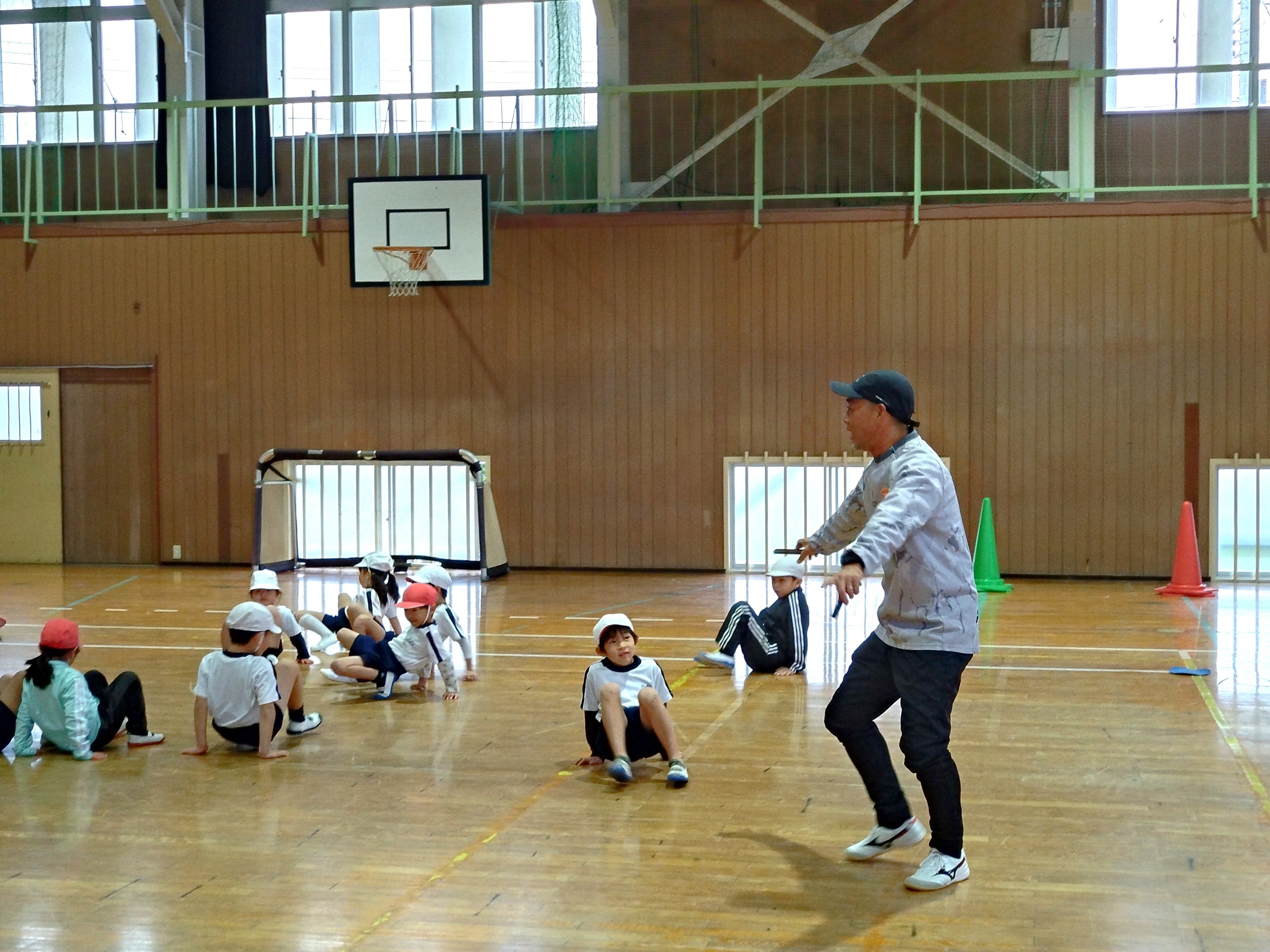 サッカーボール等を使った「体つくりの運動あそび」等を通じて、児童の皆さんに、日常的に運動することの大切さや運動の楽しさを伝えました。