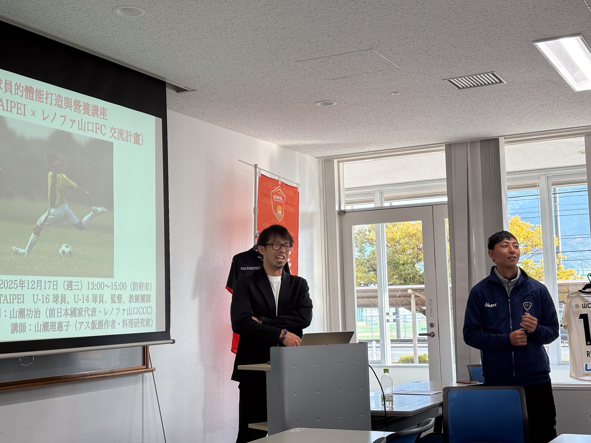 レノファ山口FCは、2025年12月15日(月)〜12月20日(土)の期間、台湾・台北市を拠点とするサッカーアカデミー「EC DESAFIO TAIPEI(代表:松下勇亮)」の選手・指導者を山口県に迎え、レノファ山口FCのアカデミー生や地域企業などとスポーツ交流プログラムを実施しました。本取り組みは、台湾との豊富な交流実績を持つ株式会社丸久様のご協力のもと実施しました。