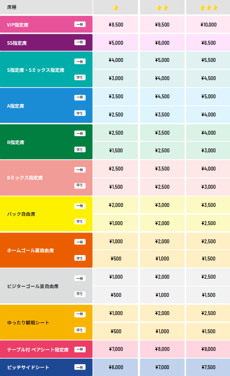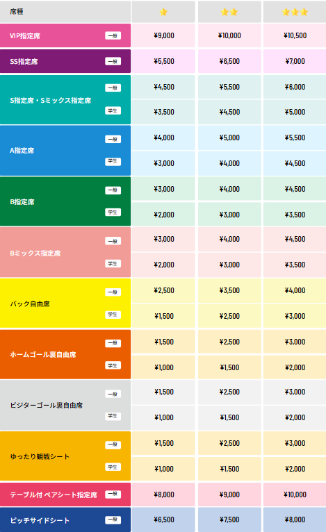 <当日券> 指定席・自由席:Jリーグチケット、チケットぴあ、ホームゲーム会場