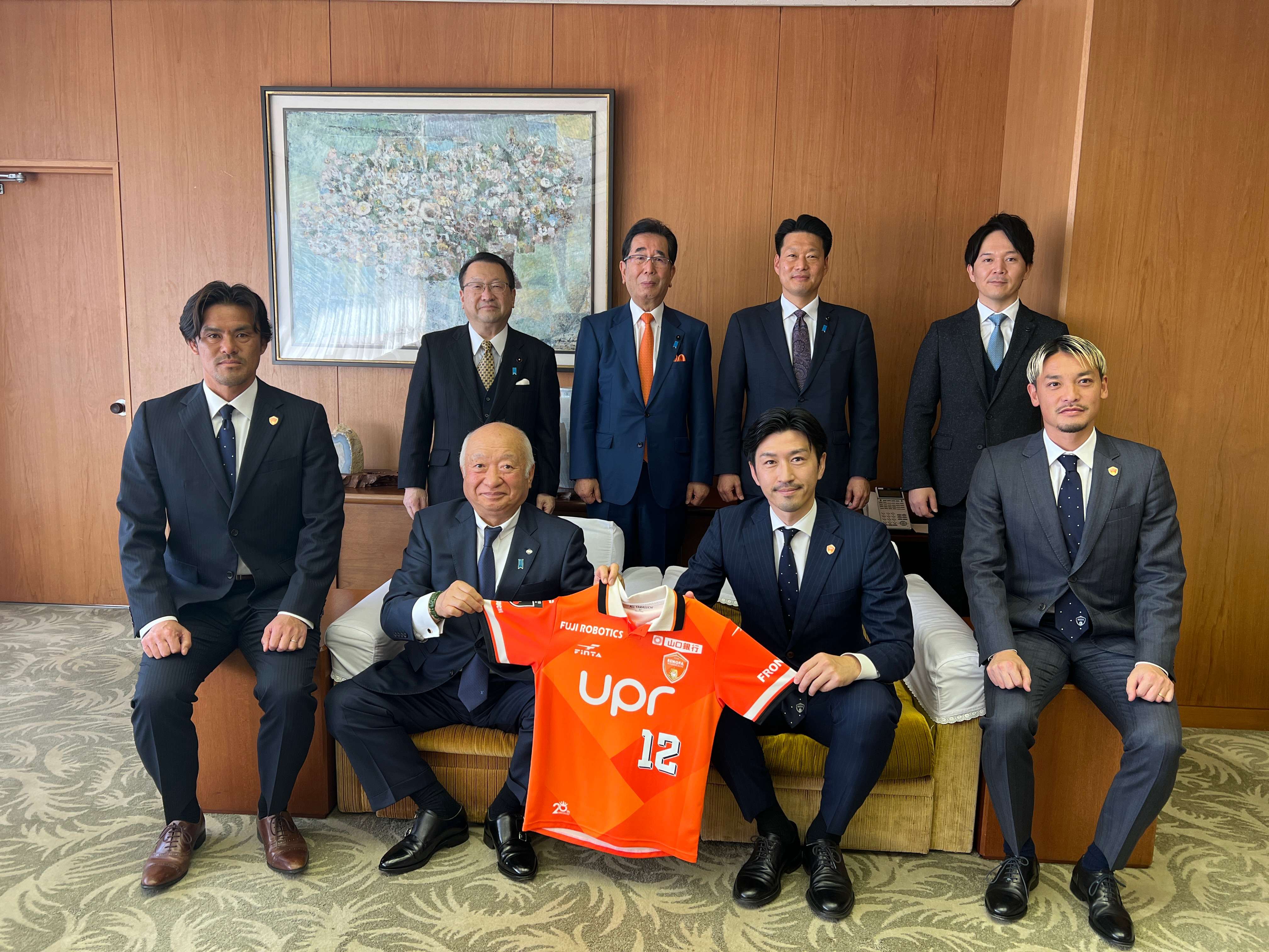 1月13日、レノファ山口FCの渡部博文社長、小田切道治監督、野村直輝選手が、山口県議会柳居俊学議長を表敬訪問いたしました。