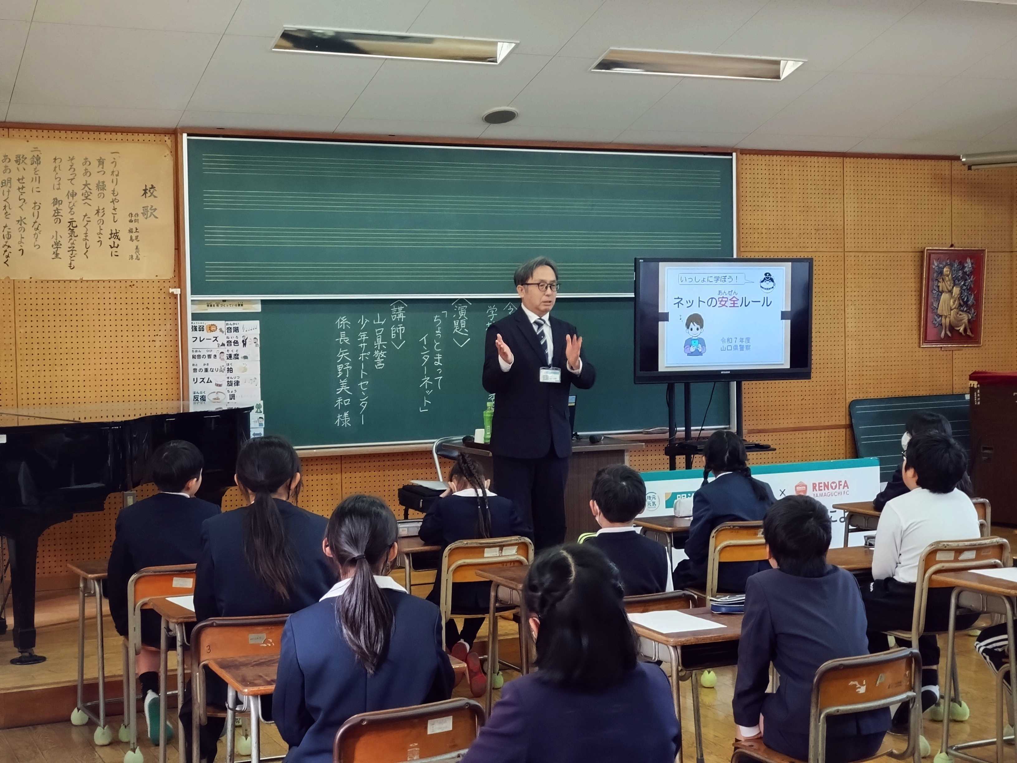 山口県警察本部生活安全部人身安全・少年課少年サポートセンターの矢野様から、「ちょっとまってインターネット」をテーマに、5年生児童や保護者の皆様等へ、インターネットの安全ルールについて講演を実施いただきました。