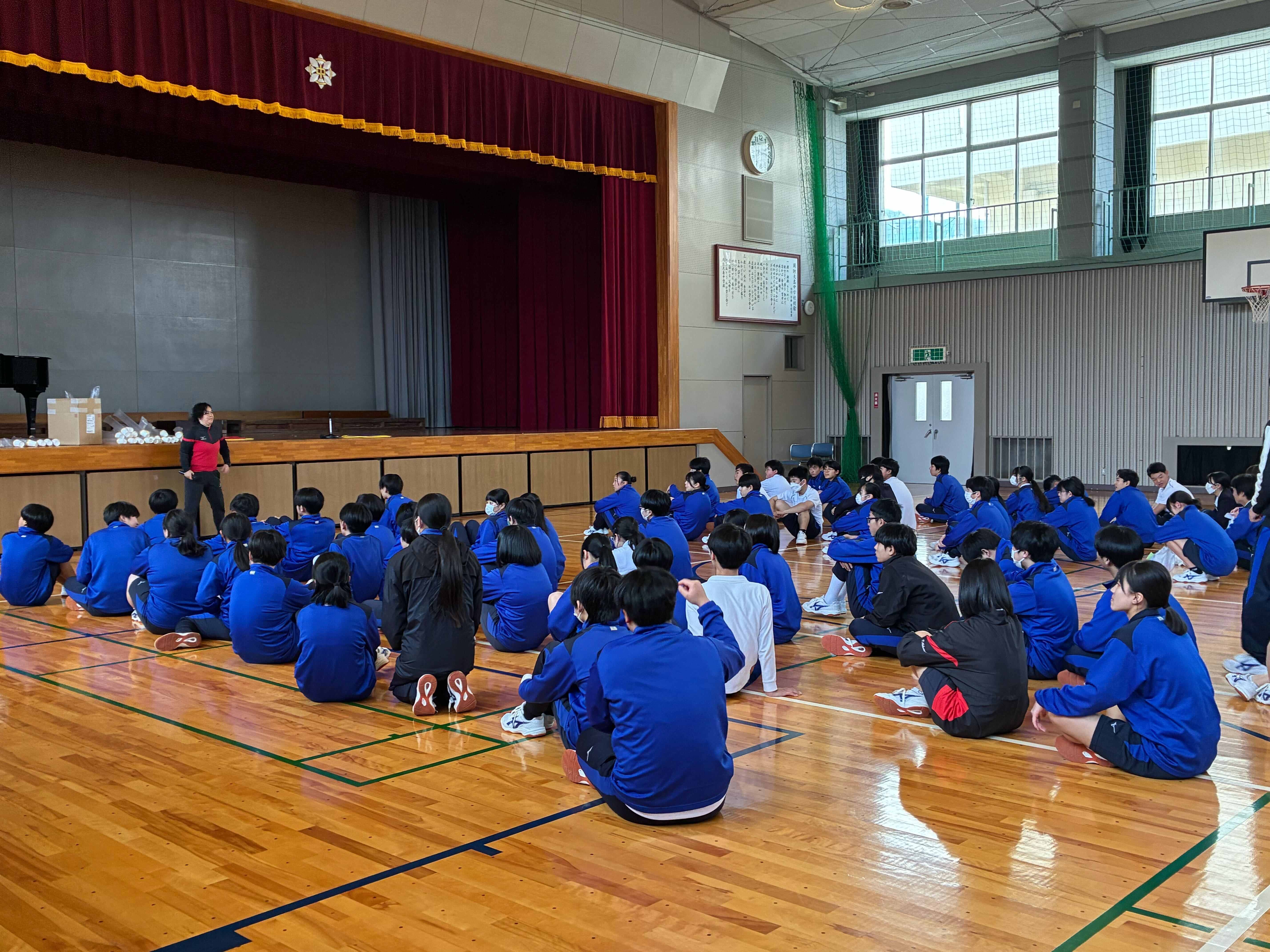 1月28日(水)に山口県の「プロスポーツチームとの連携による体力向上推進事業」で周防大島町立周防大島中学校にて運動教室を開催しました!