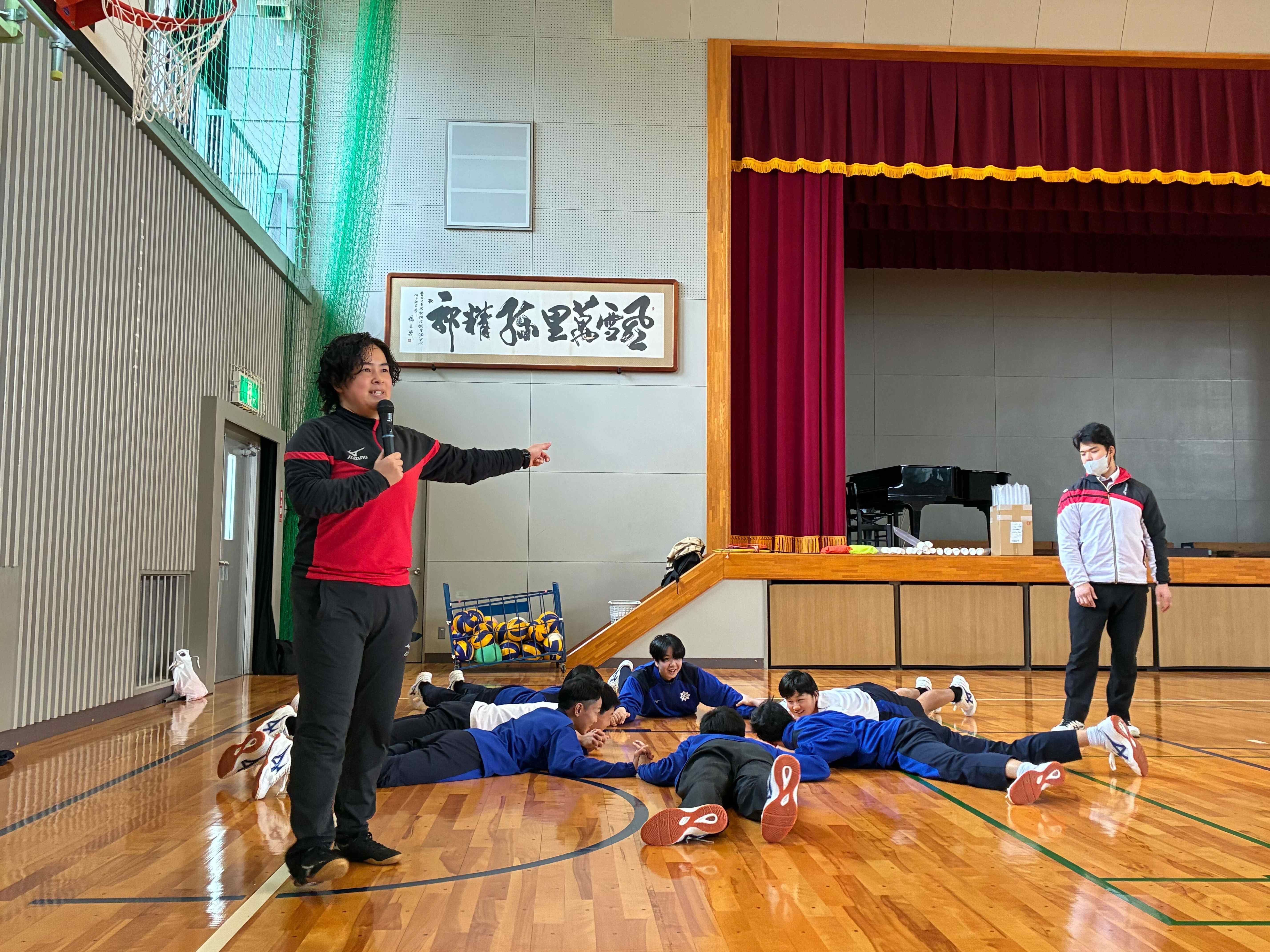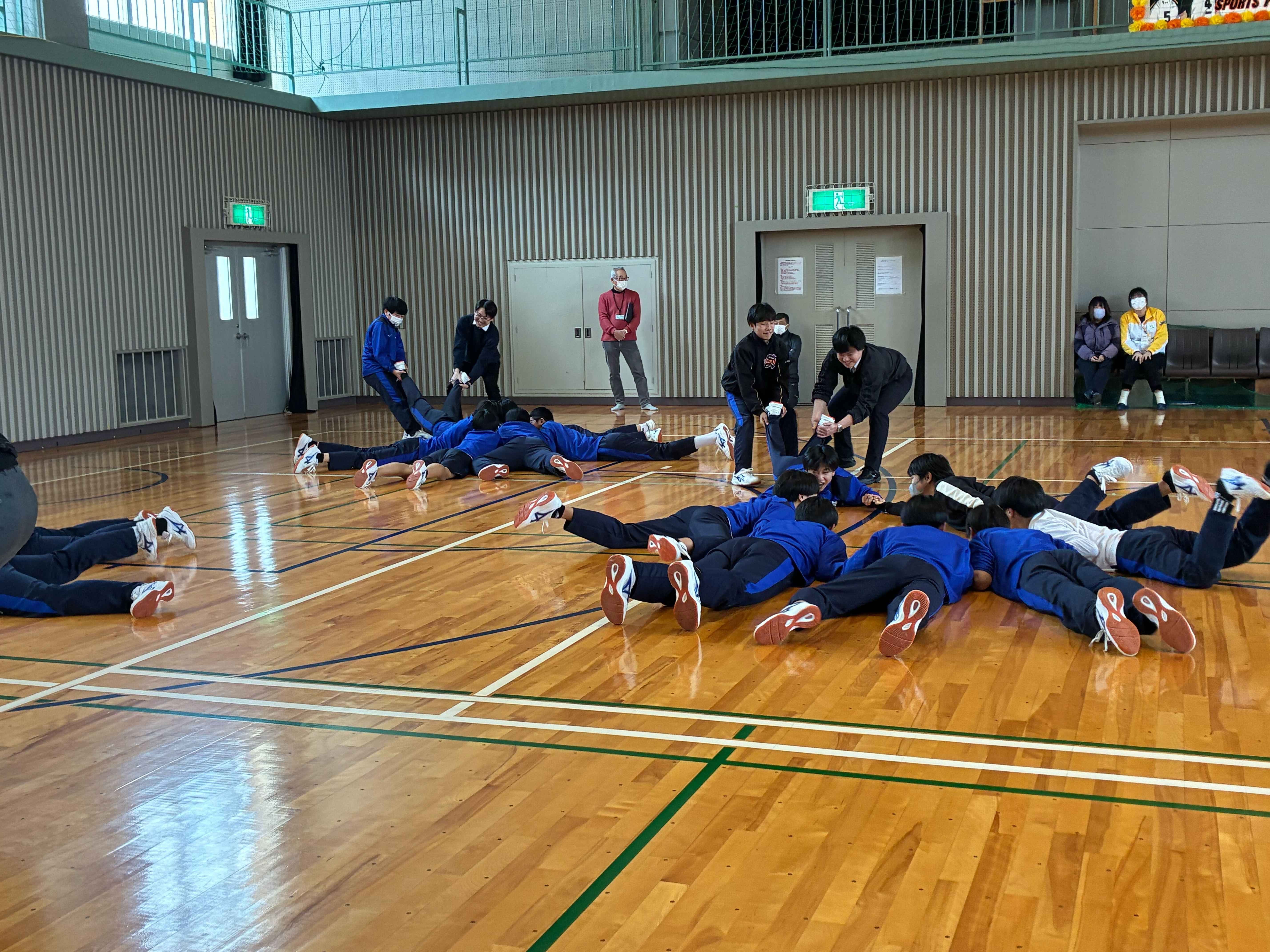 1月28日(水)に山口県の「プロスポーツチームとの連携による体力向上推進事業」で周防大島町立周防大島中学校にて運動教室を開催しました!
