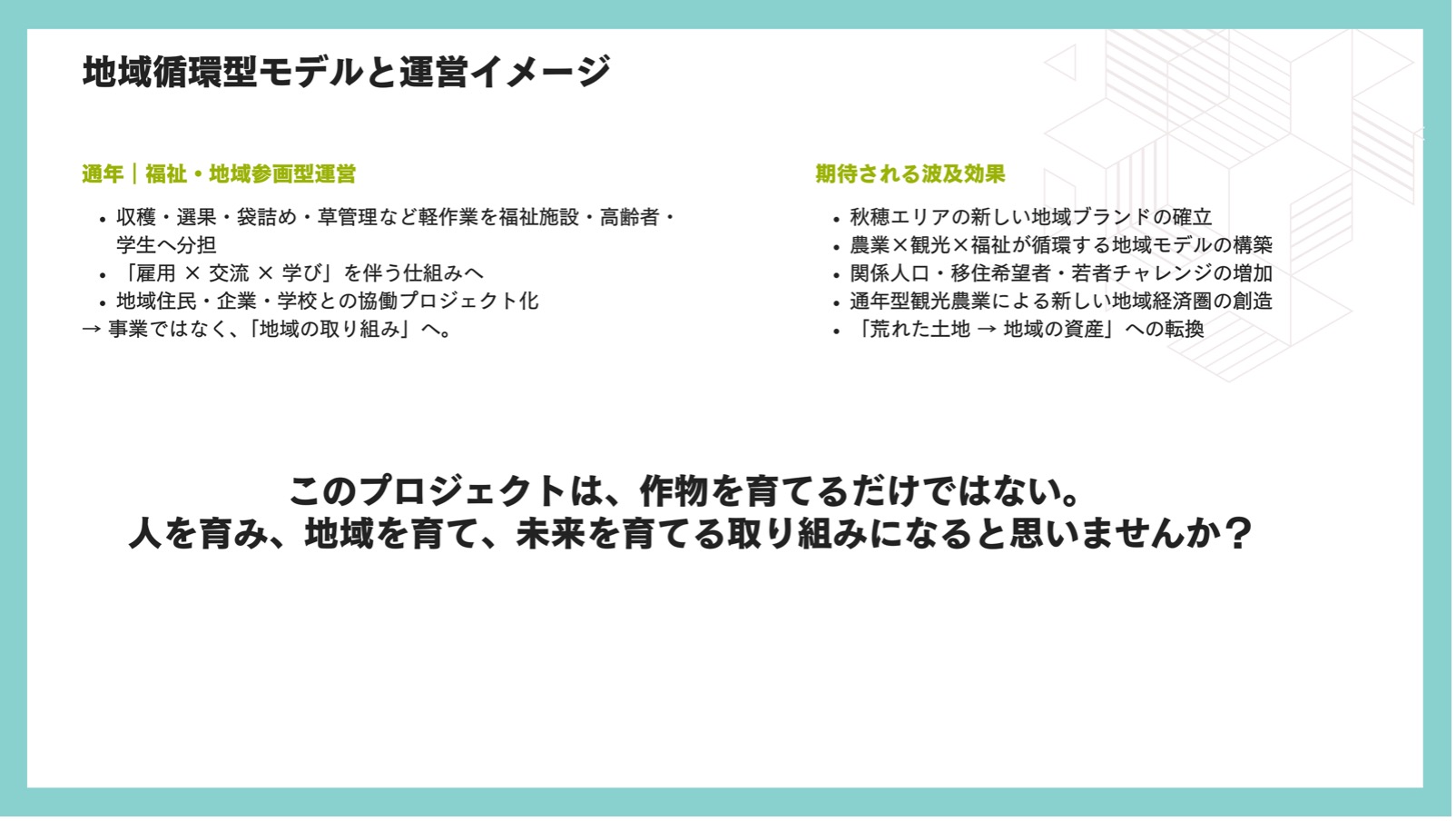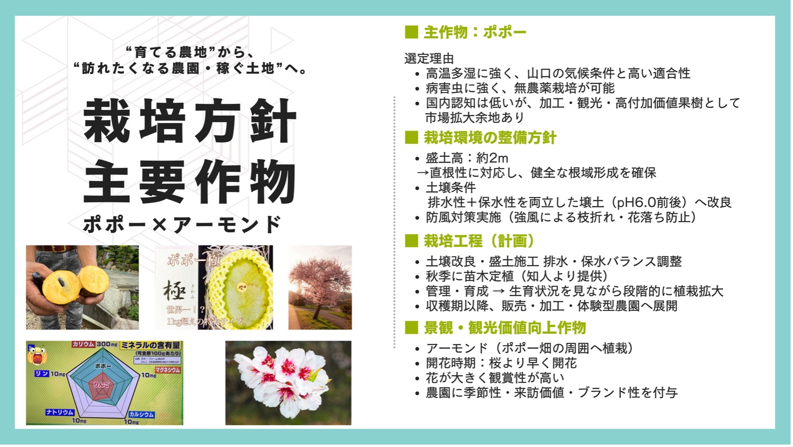 2026年1月16日、秋穂中道地区地域再生型農業モデル構想「ポポーの植樹式」に、渡部社長と内山取締役が参加しました。
