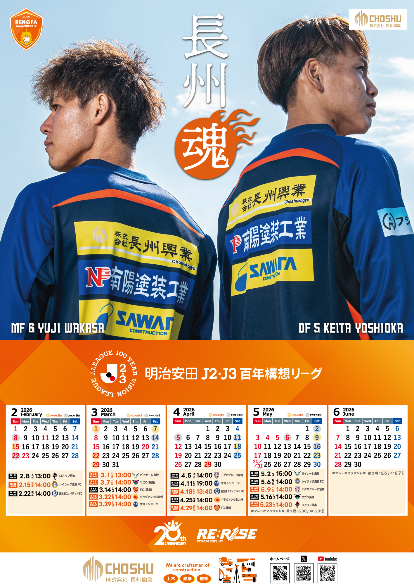 3/1(日)ガイナーレ鳥取戦で配布した、長州興業オリジナルポスターカレンダーのデータのダウンロードはこちらから!