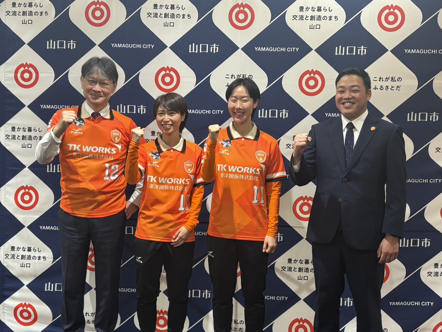 チームは今シーズンより初のなでしこリーグ2部参入を果たし、山口市でホーム開幕を迎えるとともに全力で戦うことを誓い、激励のお言葉をいただきました。