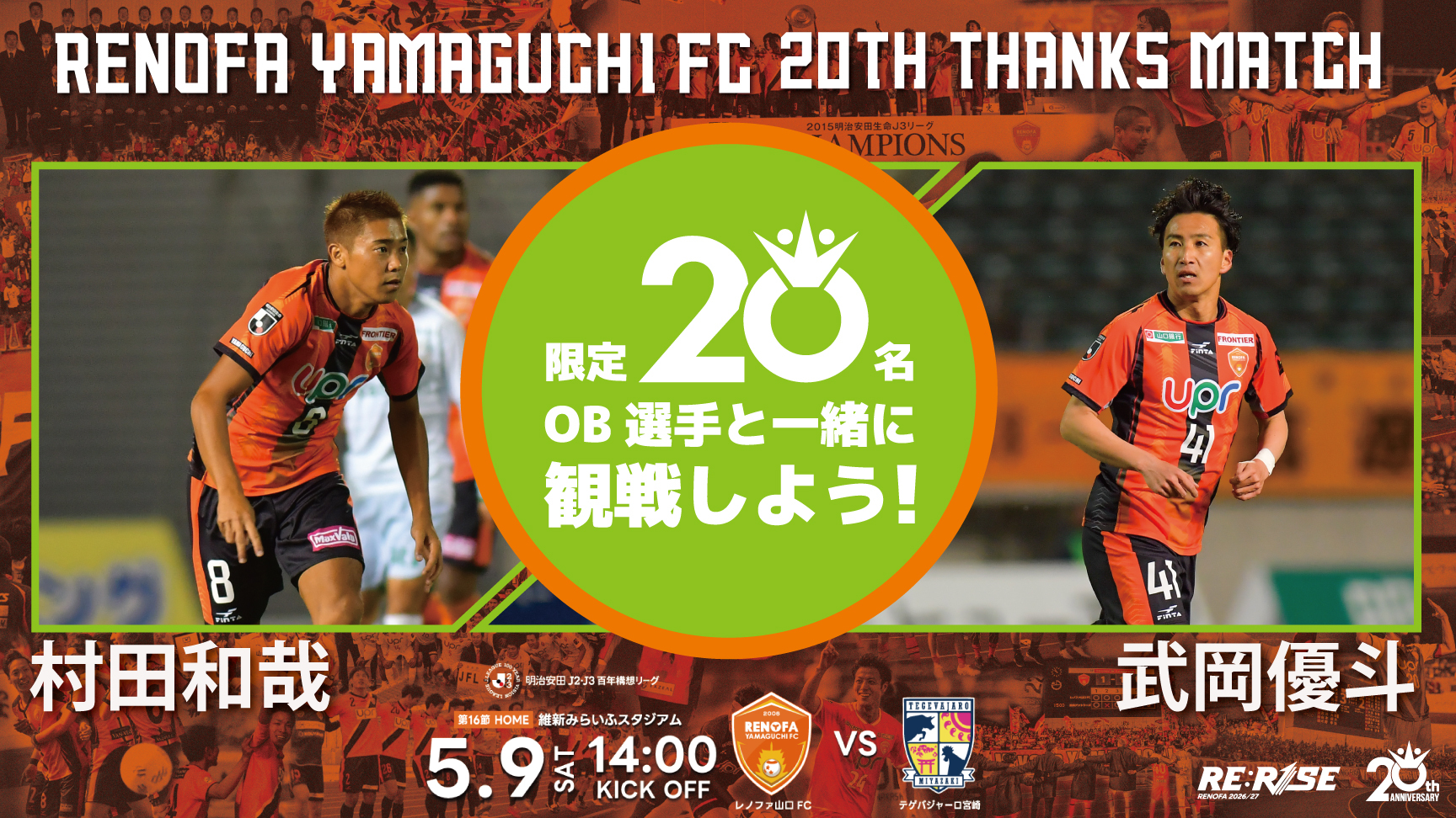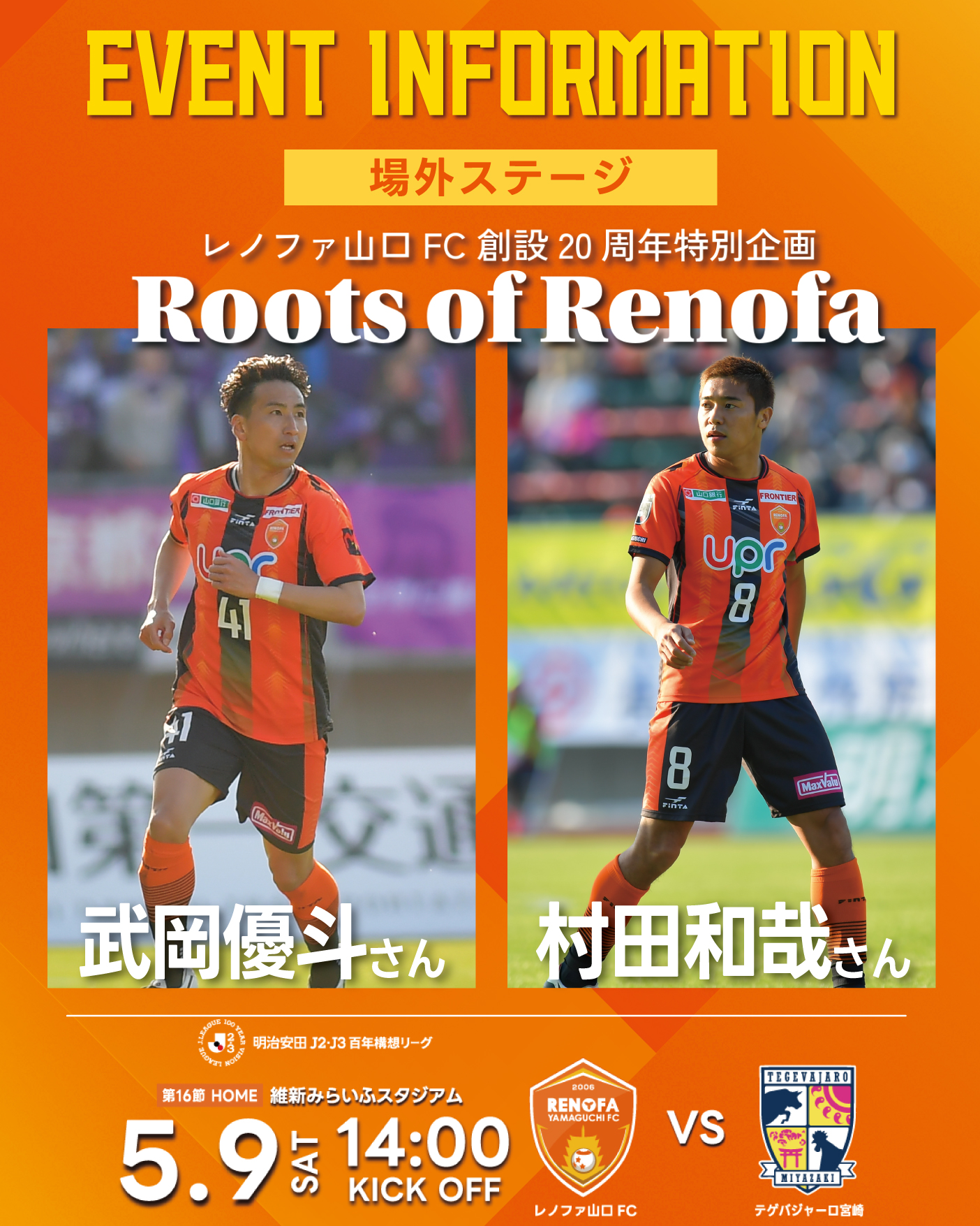 5/9(土)武岡優斗さん、村田和哉さん来場!【レノファ山口FC創設20周年特別企画 トークショー】