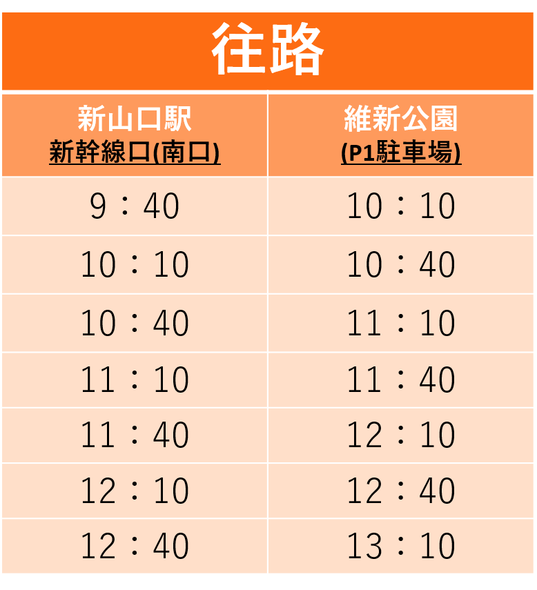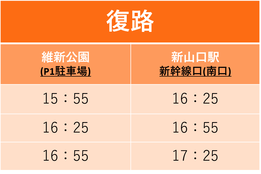 <復路>維新公園(※P1駐車場)⇒新山口駅※新幹線口(南口)バス乗降場所