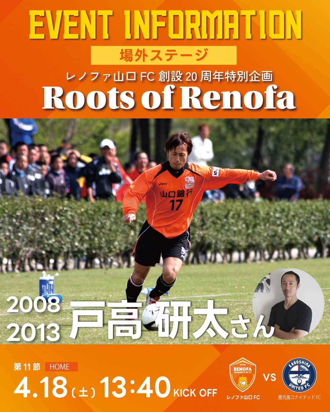 レノファ20年の歴史に関わってきた方々をゲストに迎えて開催するトークショー『Roots of Renofa』を開催。
