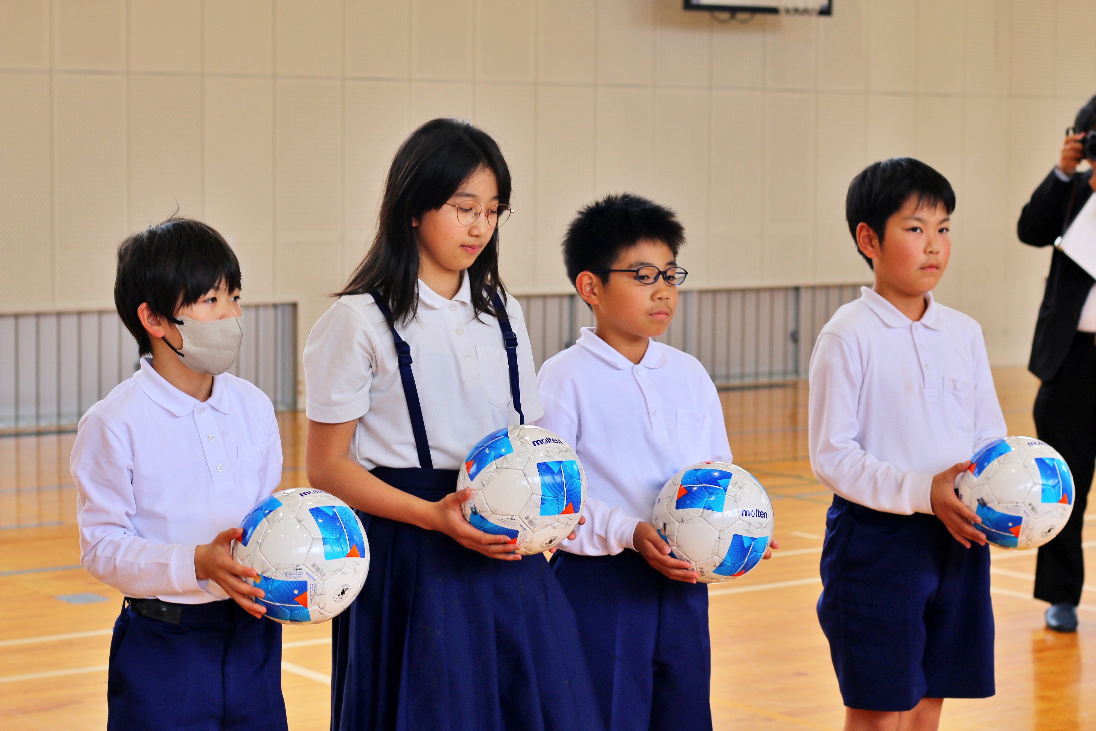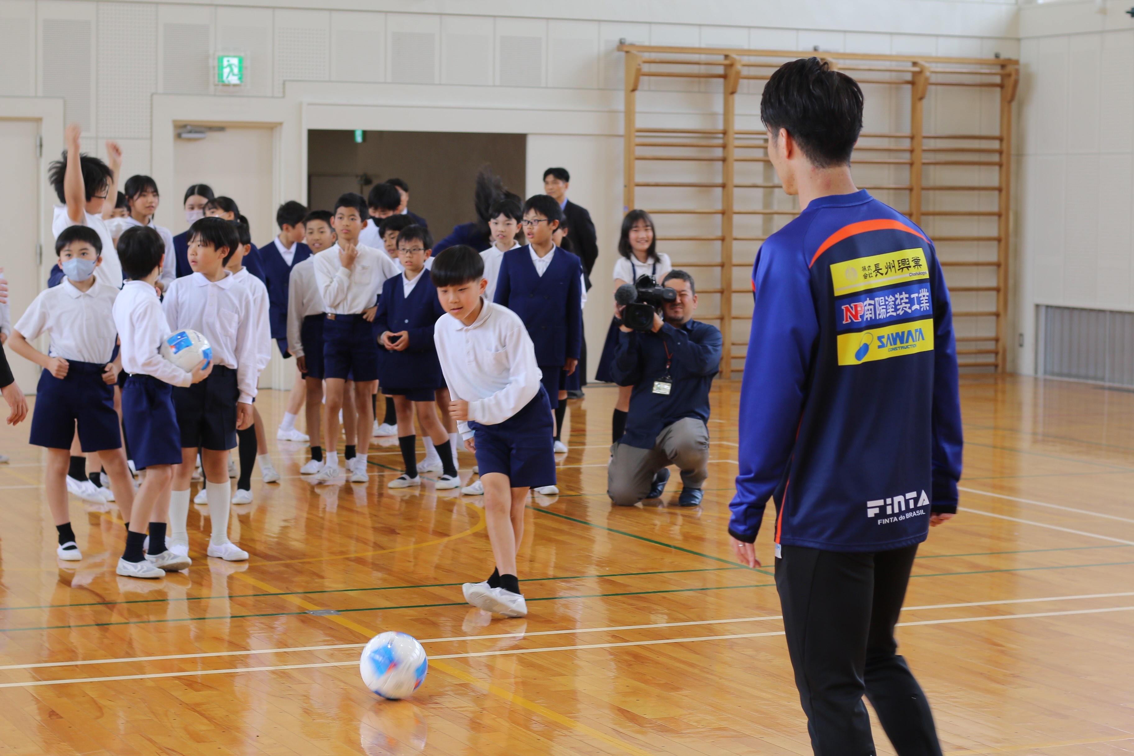 4/15(水)明治安田J2・J3百年構想リーグの2月のゴールを代表して、亀川諒史選手が山口市立小郡南小学校を訪問し、ボールの寄贈を行いました!