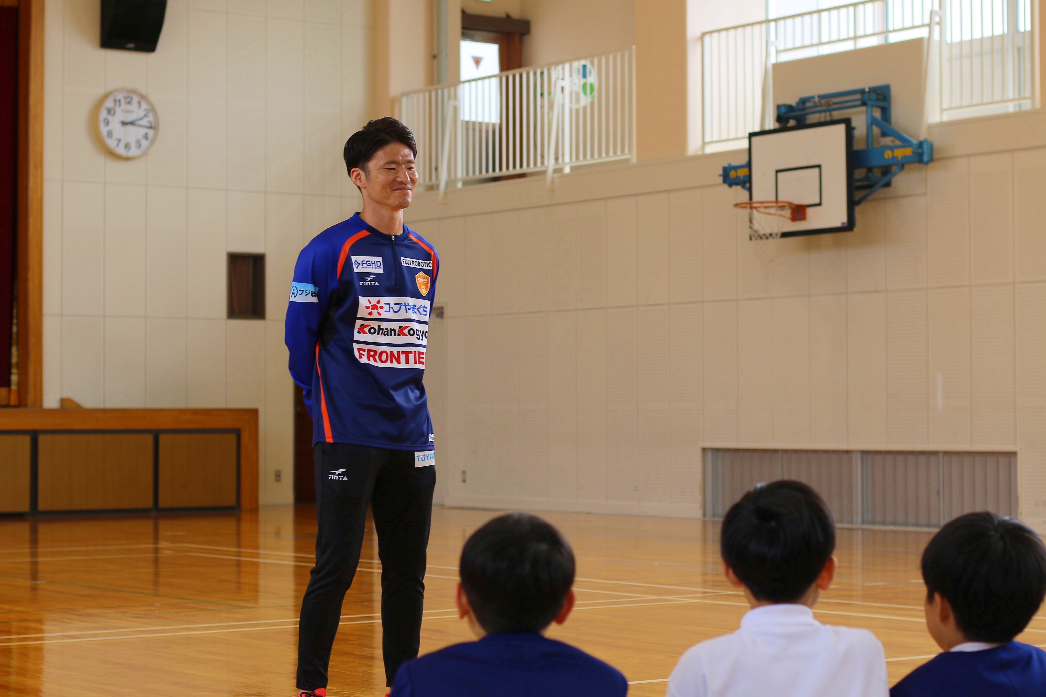 僕が小学生の時にも、ガンバ大阪の選手が来てくれたことが嬉しかったのを覚えていますし、逆の立場になって、子どもたちが喜んでくれている顔をみたら、たくさんゴールを決めてレノファをもっと知ってもらえたらと思います。