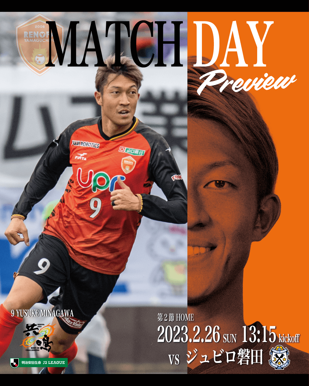 レノファの現在地を測るには絶好の相手であり、J1を目指すには越えなければならない壁だ。胸の高鳴る90分の維新劇場を、ともに心を震わせ、ともに声援を轟かせ、一心に戦っていこう!