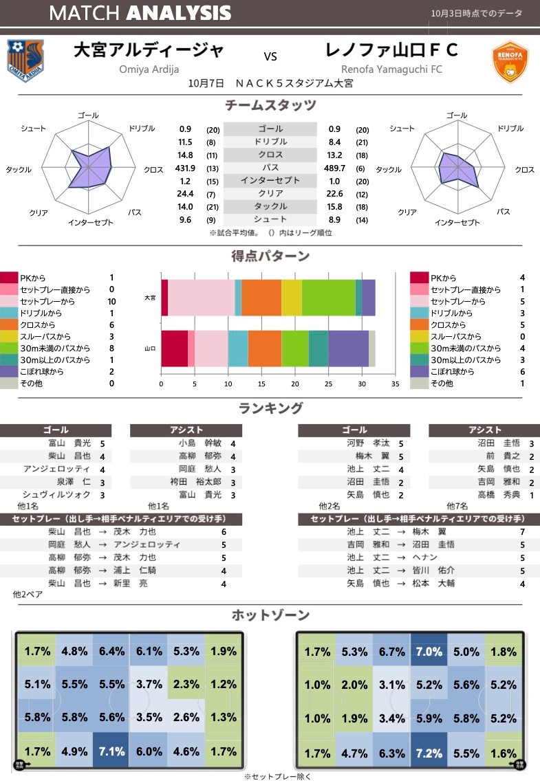 対する大宮アルディージャは開幕戦で対戦した相手で、レノファが1-0で勝利している。今シーズンの大宮はなかなか下位から抜け出せず、今も最下位の22位と苦戦しているが、前節までに2連勝を挙げており、終盤に入ってチーム状況は回復基調にある。