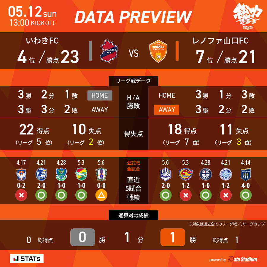 いわきは昨シーズン途中から田村雄三監督が指揮を執る。クラブの地域リーグやJFL時代にも監督を務めており、インテンシティー(強度)の高いサッカーを表現している。その強度を礎にした堅守と攻撃陣の高い得点力で上位を快走。前節まで4試合連続で無失点と守備が崩れず、順位も4位に浮上している。