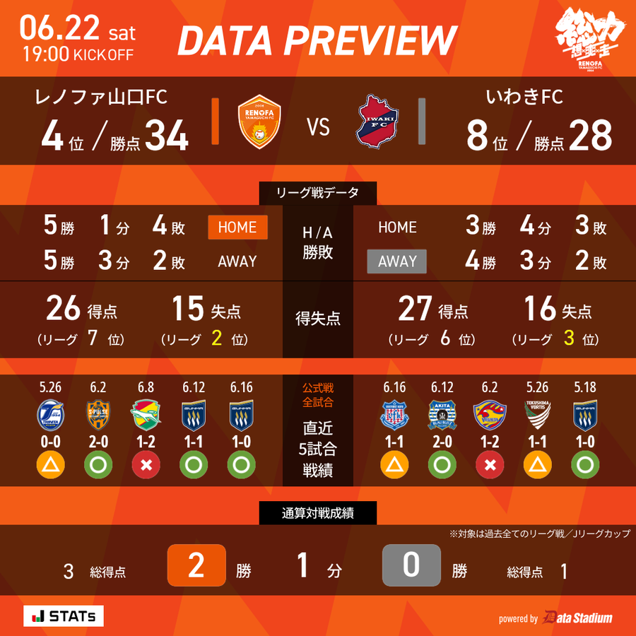 1週間前のアウェイでのザスパ群馬戦に勝利し、後半戦の好発進に成功したレノファ山口FC。今節は前回対戦を2-1で勝利しているいわきFCをホームに迎え、リーグ戦の2連勝を目指す。