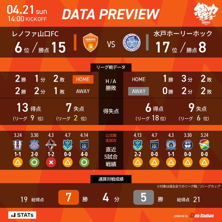 今節は水戸ホーリーホックをホームに迎える。前線からハイプレスを仕掛けたり、素早い切り替えで攻守にしっかりと人数を掛けたりし、レノファと同様、チームとしてハードワークを徹底している。レノファが勝機をつかむには、まずは信条の総力&走力で相手に走り負けないことが重要になる。