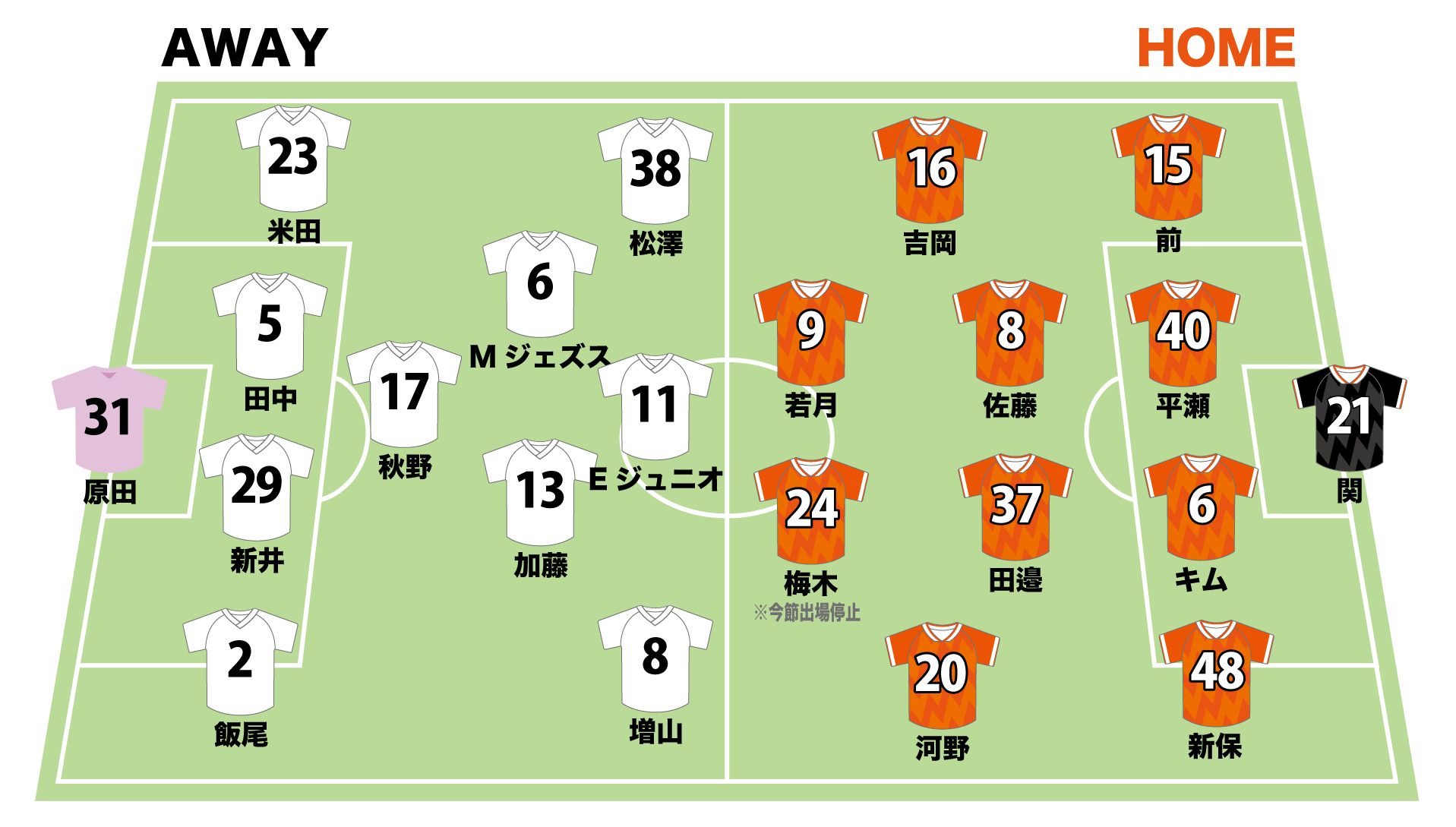 ボランチ自身もボールを収めるだけでなく、長崎の整った守備布陣に風穴を開けるべく、意欲的にボールを配っていくことが重要になる。18.相田勇樹は松本戦で途中出場し、38.末永透瑛と94.シルビオ・ジュニオールの両ゴールで起点となる動きを見せた。こうした仕事を増やせれば長崎戦でもゴールが近づいてくるだろう。ボランチがいかにボールに関わり、アクションを起こしていくか。中盤にいる職人たちの仕事は大いに注目だ。
