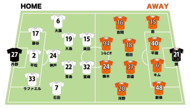 前線に位置する選手は、ベテランの長身FW矢野貴章(背番号29)や複数ポジションをこなす大島康樹(同19)などで、レノファとしては少し苦手意識もあるのは否めない。直接対峙する6.キム・ボムヨンや40.平瀬大がしっかりと競り勝つと同時に、周囲も距離感良くボールに詰め、セカンドボールを与えないようにすることが、無失点ゲームのカギになる。