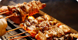 養鶏業も盛んな長門市は、全国7大やきとりタウンの1つ。鶏肉や豚肉、魚介や野菜を串に刺して焼き、主に塩で食べるスタイルで親しまれています。