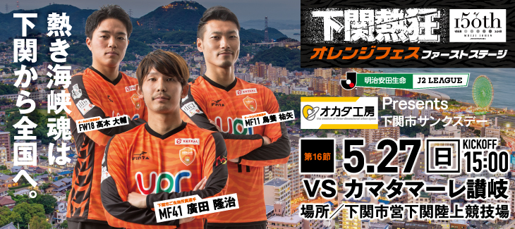 5月27日(日)に開催します、2018明治安田生命J2リーグ 第16節 オカダ工房 presents 下関市サンクスデー 「レノファ山口FC vs カマタマーレ讃岐」ついてご案内します。