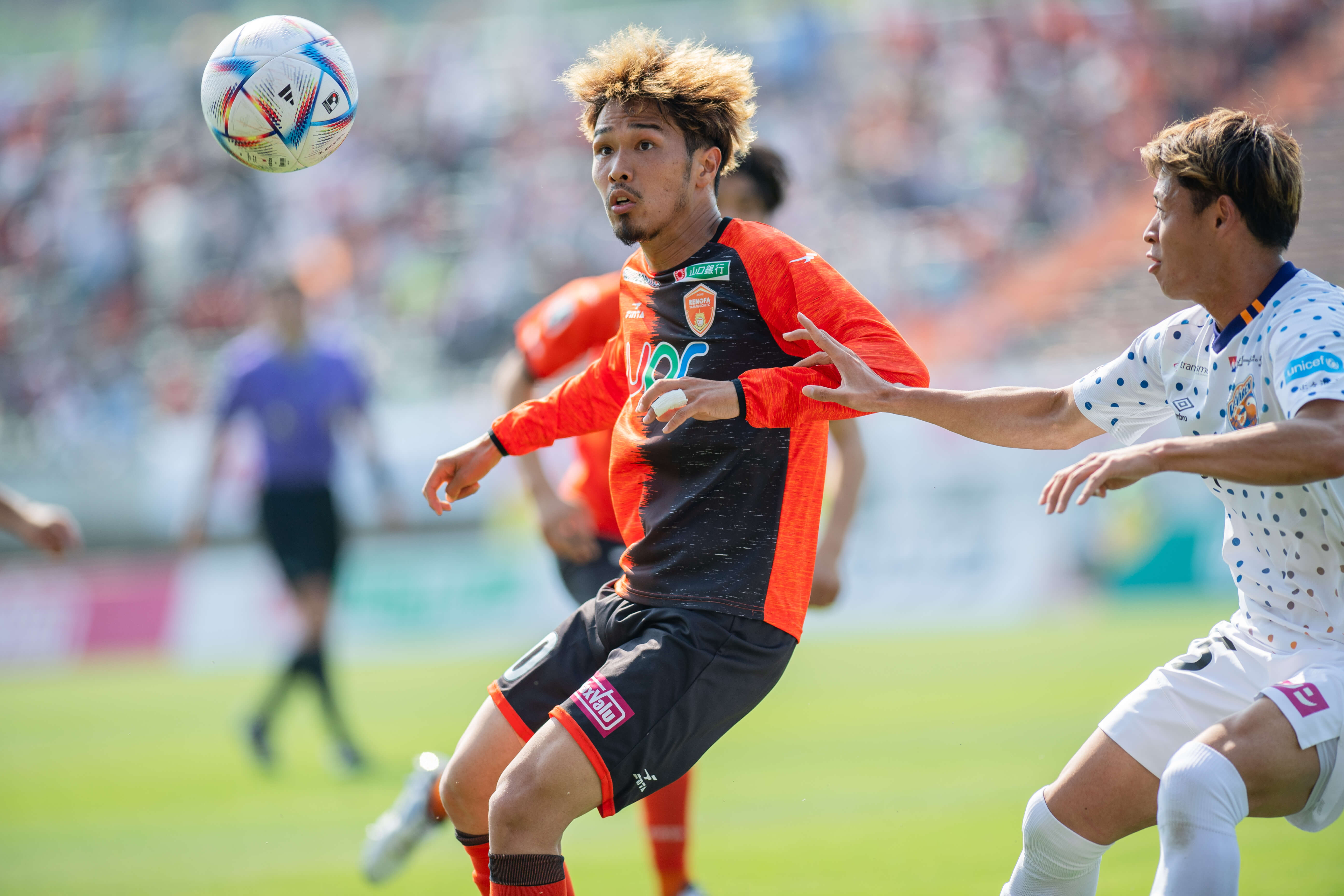 キャプテンの役割こそベテランの6.渡部博文選手に託しましたが、今年も引き続いてレノファの中心選手が背負ってきた「10番」を担い、前に矢印を向けたチームスタイルを体現しています。ベンチスタートとなる試合もありますが、やるべきことは不変。レノファのサッカーを表現して、チームを勝利へと導いています。