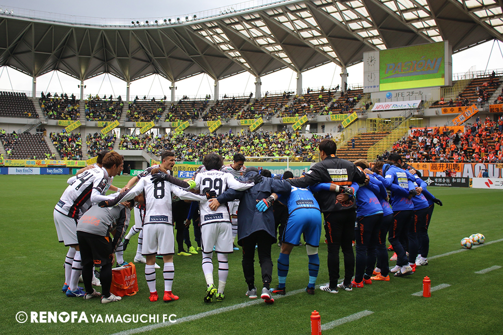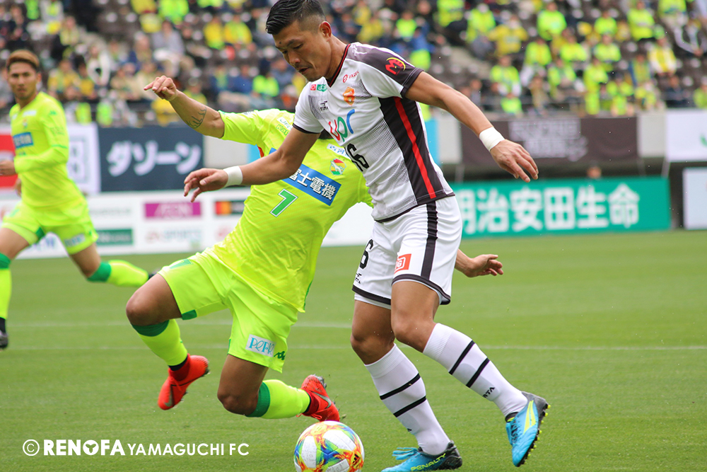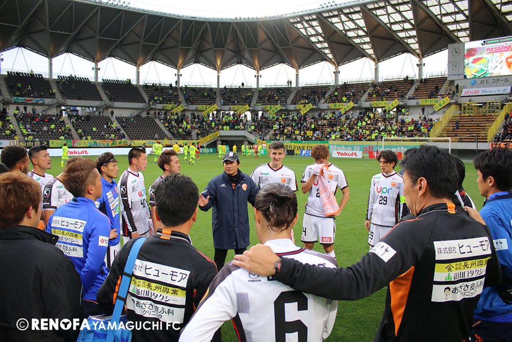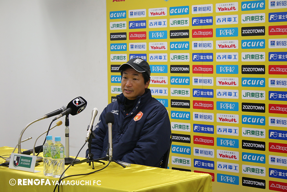 A. 嬉しいです。勝てたことが嬉しいですし、交代で出場した選手が得点を取ってくれて勢いをつけてくれました。最後まできついゲームでしたが、声を出して支え合って、勝点3を持って山口に帰ることができて嬉しいです。