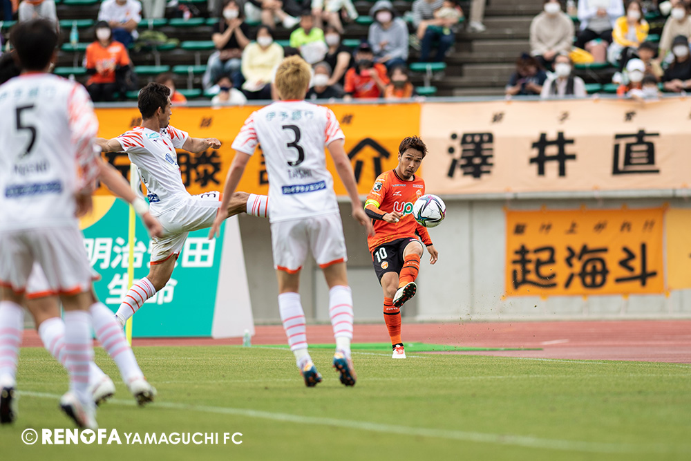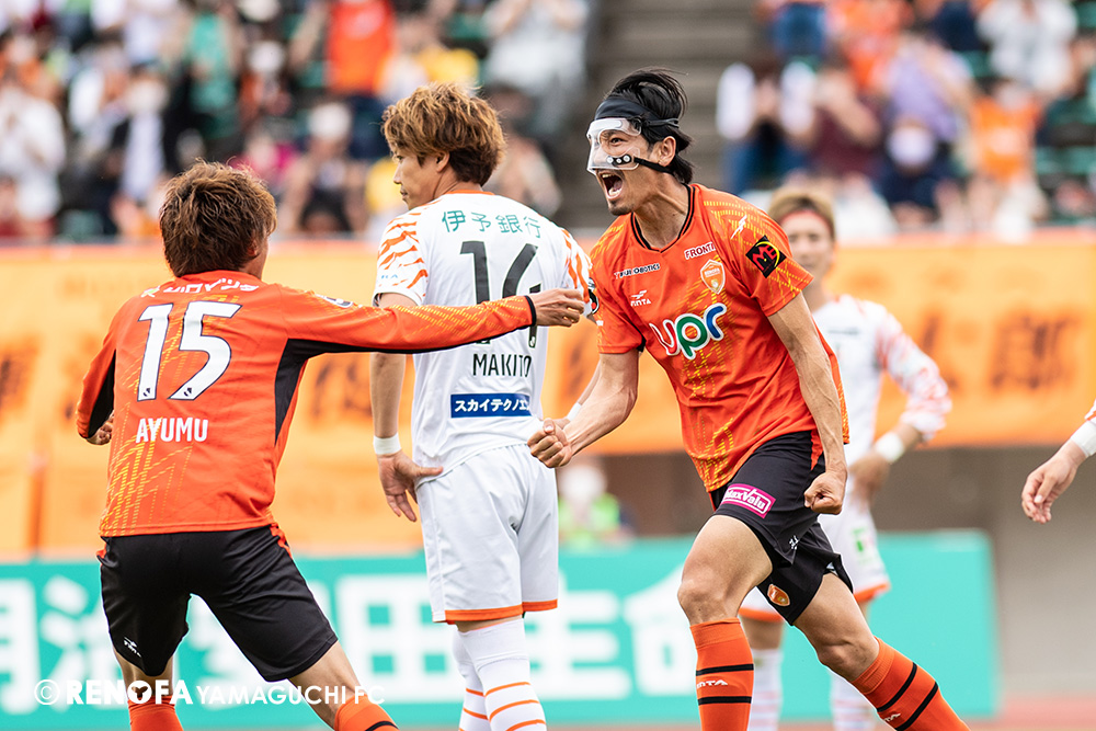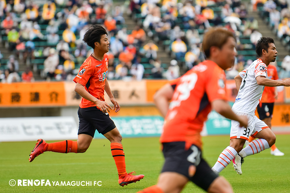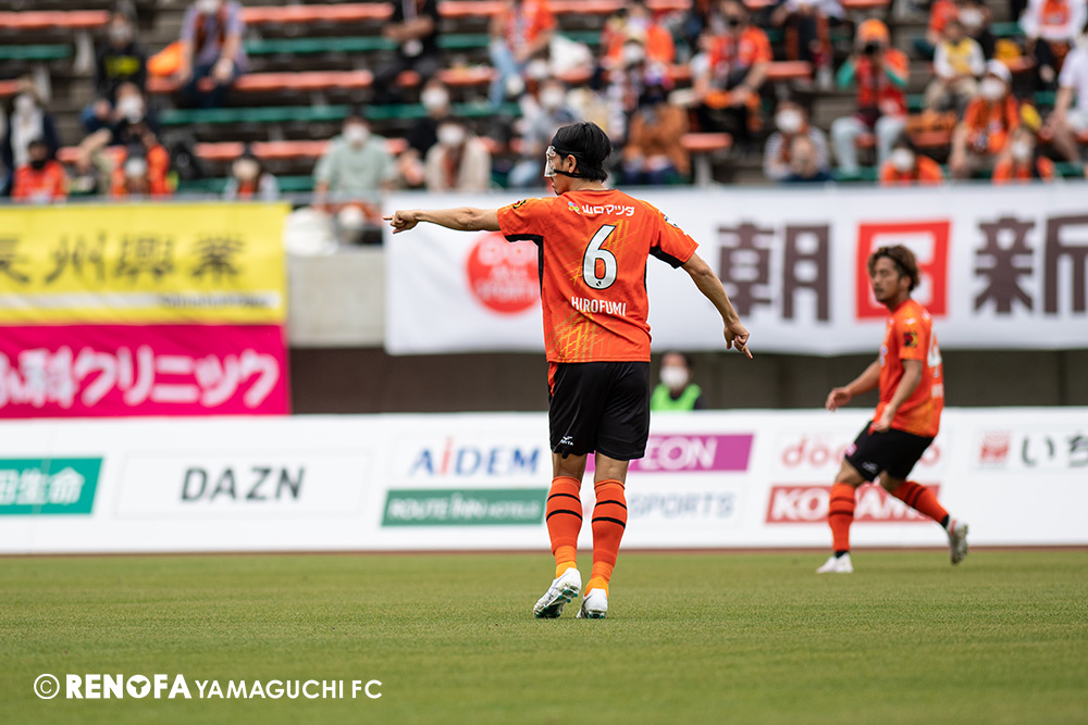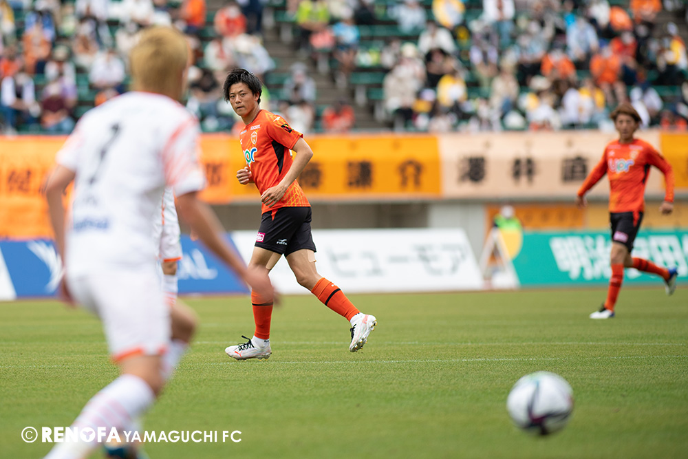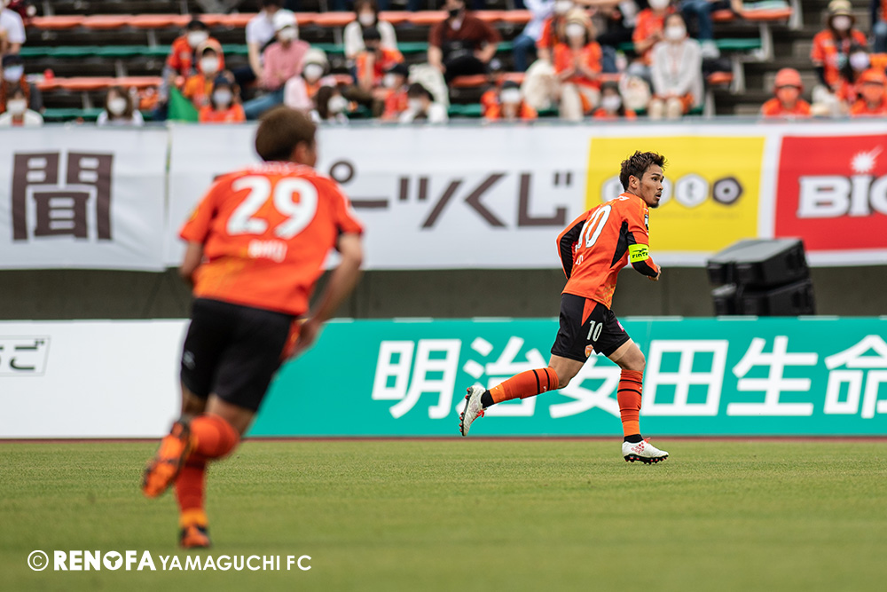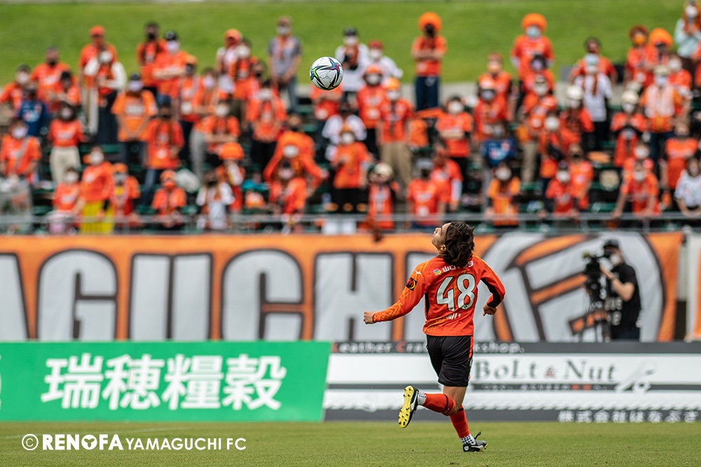 前にレン(小松蓮)とヒロさん(渡部博文)が立っていて、そこを抜けてこぼれてきたらダイレクトで打つというイメージはしていました。そのイメージ通りにプレーできて良かったと思います。ホームで点と取っていませんでしたので、サポーターのみなさんにゴールであいさつすることができたのは良かったと思います。