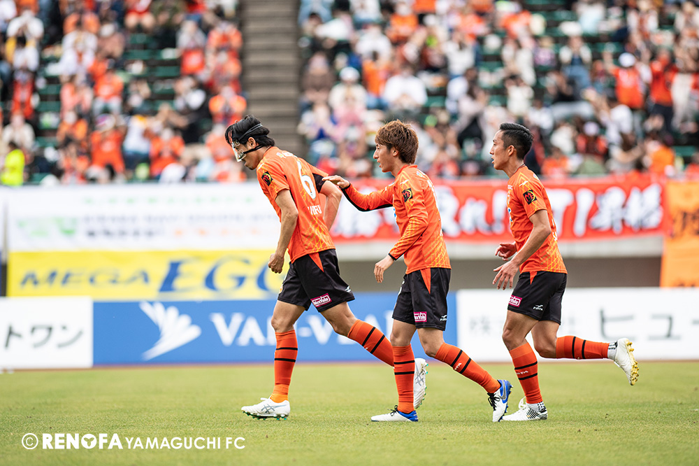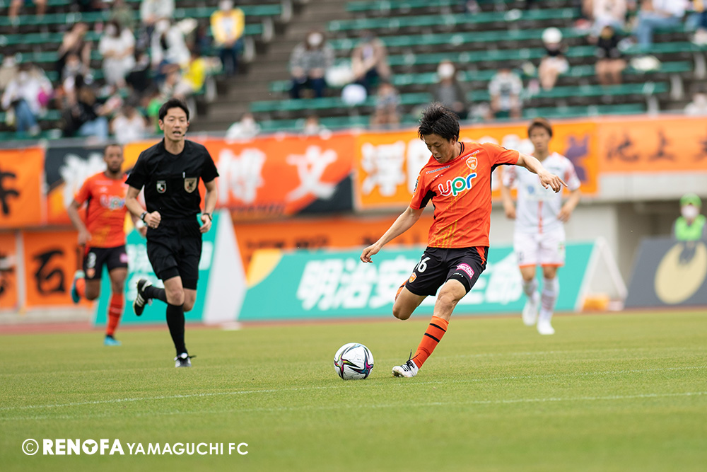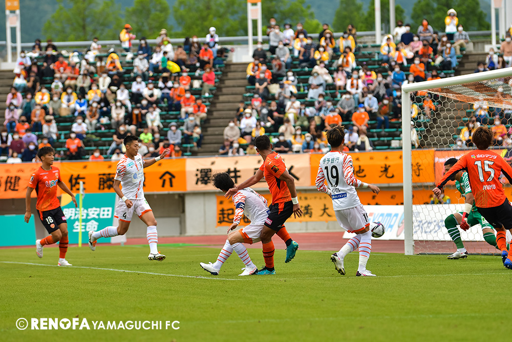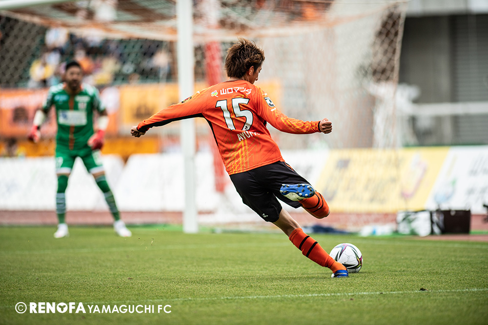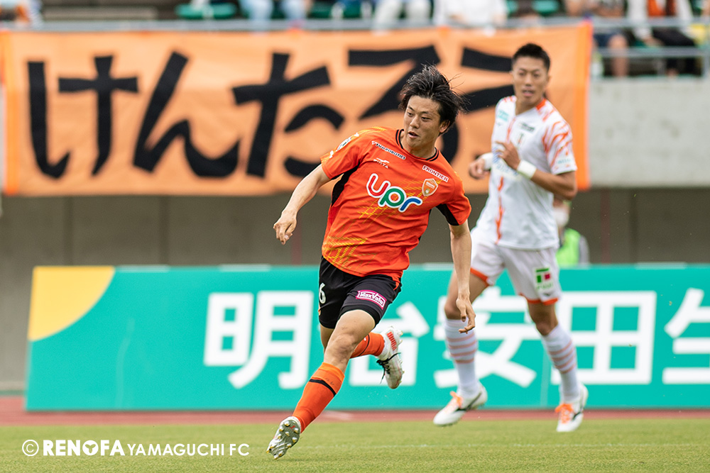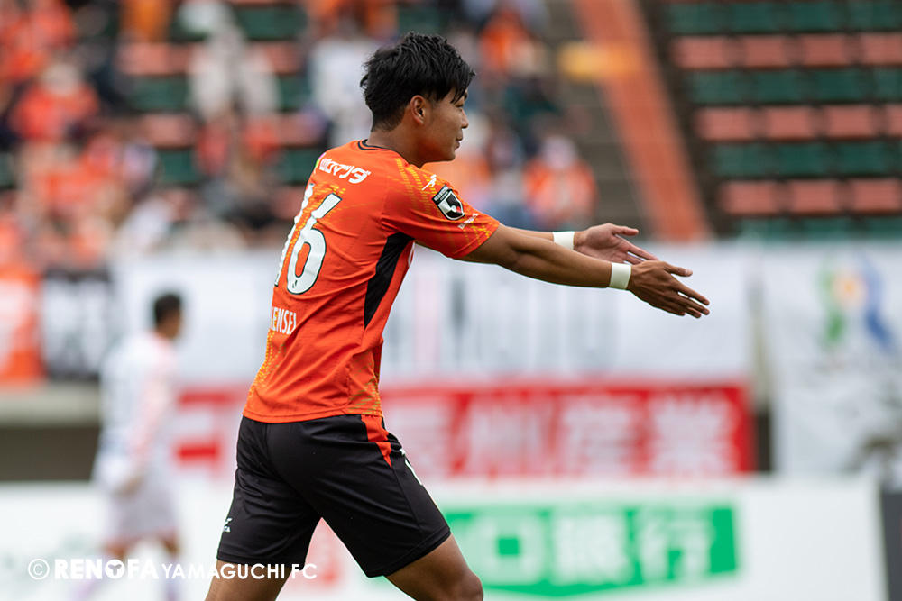 前にレン(小松蓮)とヒロさん(渡部博文)が立っていて、そこを抜けてこぼれてきたらダイレクトで打つというイメージはしていました。そのイメージ通りにプレーできて良かったと思います。ホームで点と取っていませんでしたので、サポーターのみなさんにゴールであいさつすることができたのは良かったと思います。