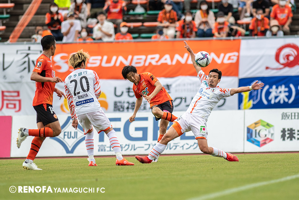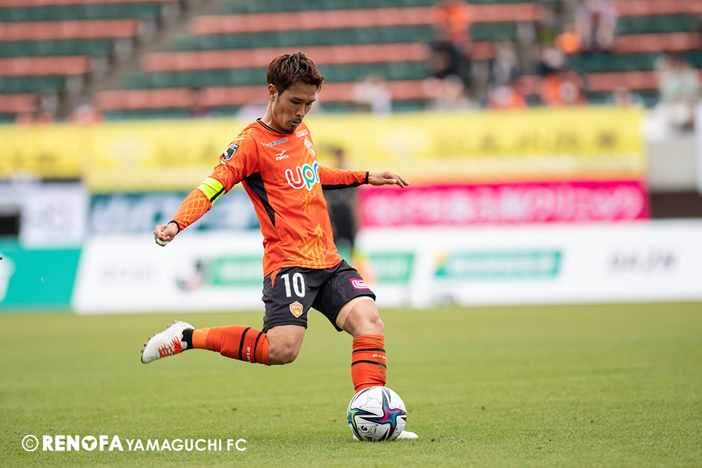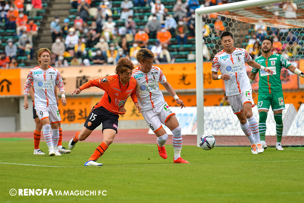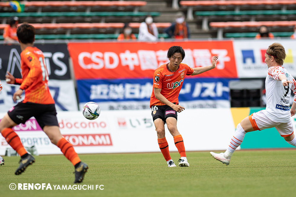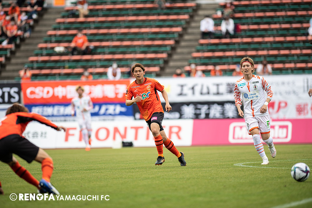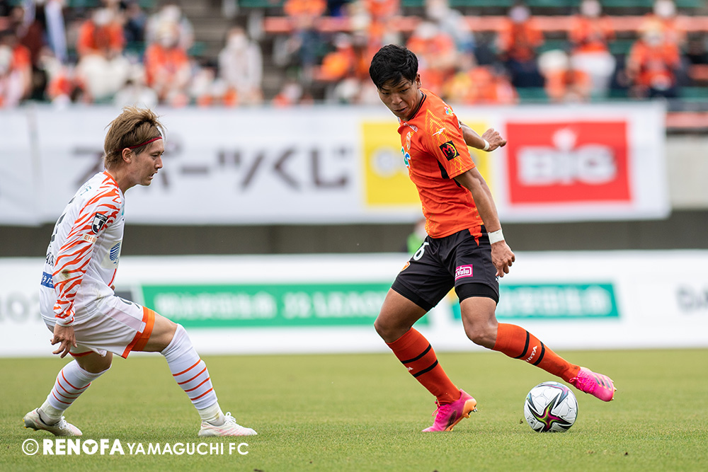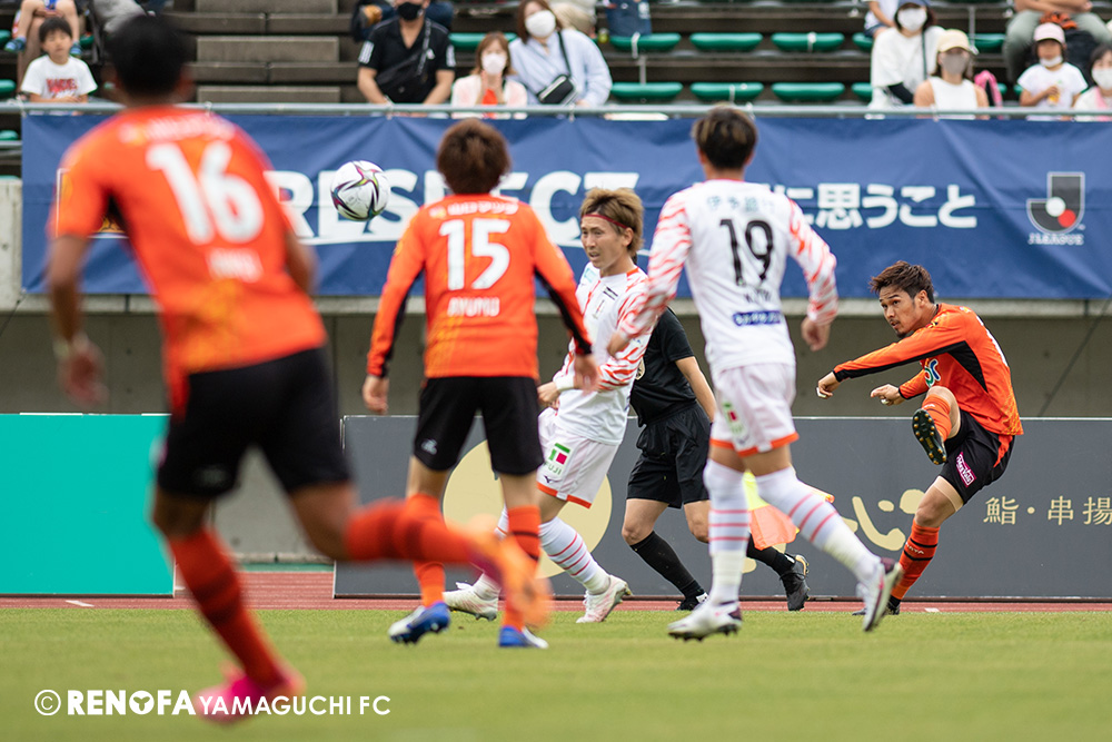 前にレン(小松蓮)とヒロさん(渡部博文)が立っていて、そこを抜けてこぼれてきたらダイレクトで打つというイメージはしていました。そのイメージ通りにプレーできて良かったと思います。ホームで点と取っていませんでしたので、サポーターのみなさんにゴールであいさつすることができたのは良かったと思います。