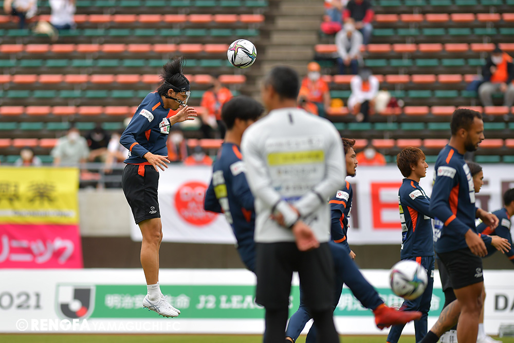 練習でも何度かヘディングする場面はありますし、フェースガードで守られていますので、逆に顔の一部だというくらの気持ちで臨みました。今日も何回かヘディングするところはありましたが、あまり弱気にならず、自分から積極的に競りに行こうという気持ちで臨んでいました。