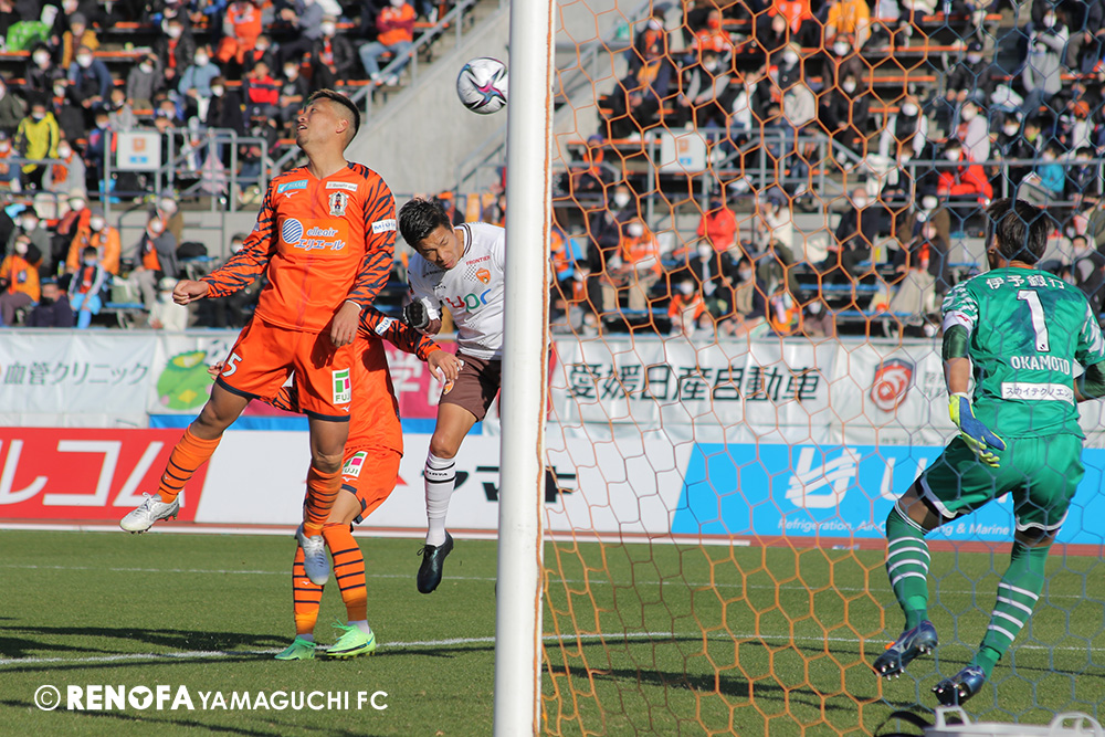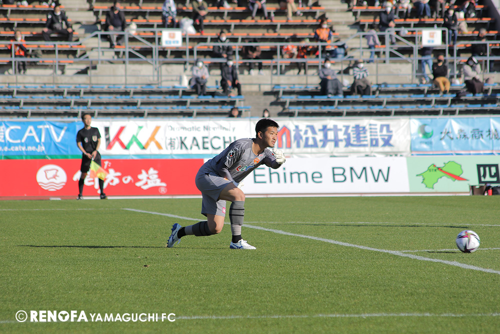 前半に関してはしっかりとボールを握ってボールを動かせたと思いますが、その中でももう少しテンポを変えながら動かさないとなかなか崩せない。ずっと言っている課題ですので、そこはまたトレーニングからやっていきたいです。ボックス内のトレーニング、決めきるところを貪欲に求めていきたいと思った試合でした。後半は逆に愛媛さんがパワーを持ってプレッシャーを掛けてきましたので、そこを受けずに、そこを跳ね返せるだけのクオリティーとメンタリティーを持ち合わせないとこういう試合で勝点3を取ることは難しくなると最終戦で思いました。
