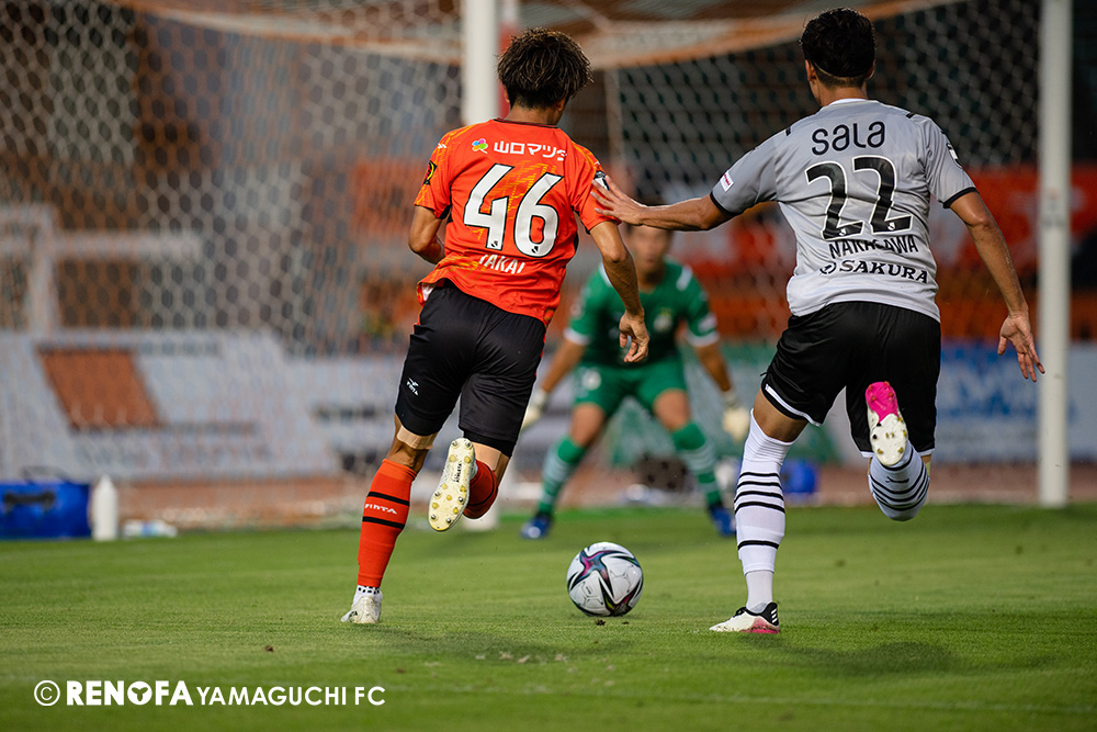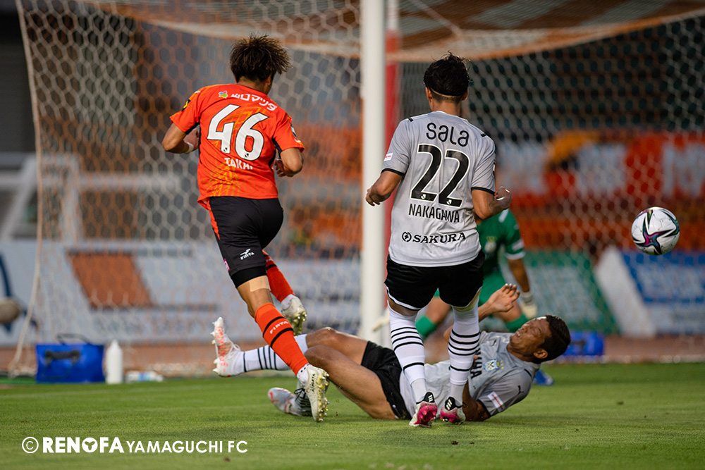前半の早い時間帯で良い形でボールが自分のところに転がってきました。高井和馬の動き出しも良かったですし、シンプルに預けて中に入り込もうと思いました。和馬はドリブルスピードが速いので、けっこうなスピードで入っていかないと間に合わないなと思って、そこで相手DFもいましたが、ポジション争いしながら体を前に入れ込んで、前に入れたのがゴールにつながった一つの要因かなと思います。