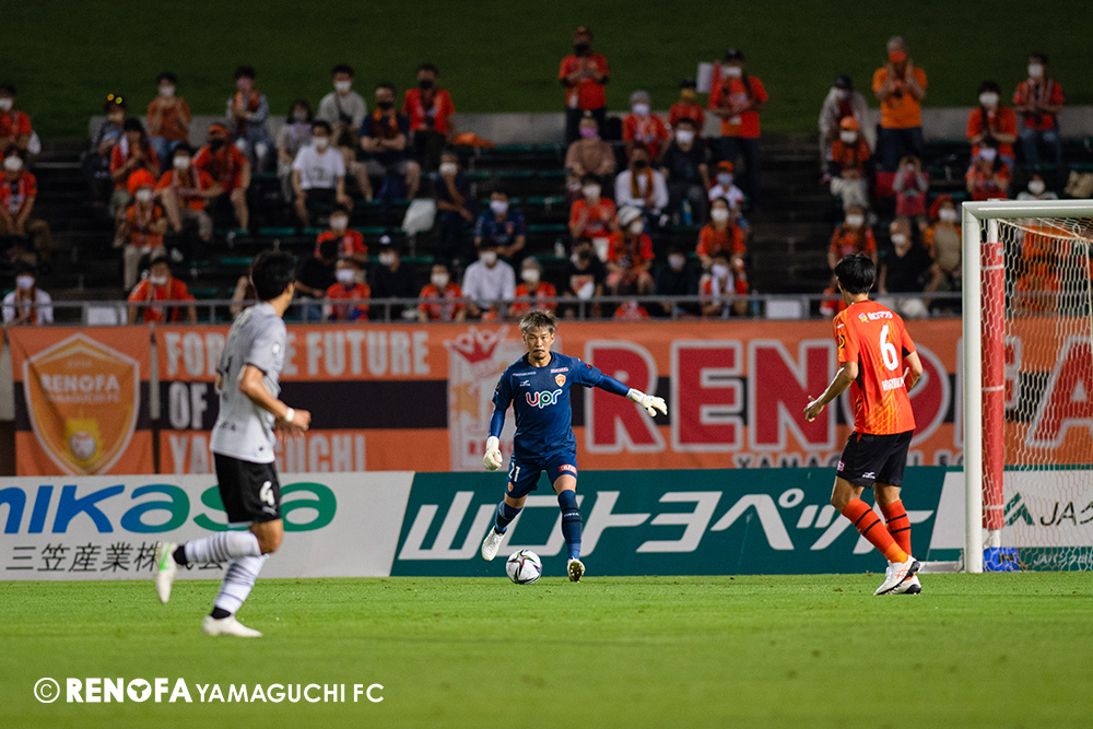 後半の立ち位置が、本来、前半の立ち上がりからやりたかったものでした。5バックで守る相手には、我々の3枚のうちの一人がプッシュアップしてサイドで数的優位を作るということが基本的な考え方で、今週、そういうトレーニングもしていました。右の楠本は走力もありますから、どんどんと出ていく。走るタイミング、走る角度、場所はこういうところだよというのはトレーニングで話していました。彼は自分のアイデアを含めながら良くやってくれましたと思います。願わくば前半のうちからもう少し表現できれば良かったですが、後半に修正して、自分も行けるぞというエンジンも掛けてやってくれたのは素晴らしかったと思います。
