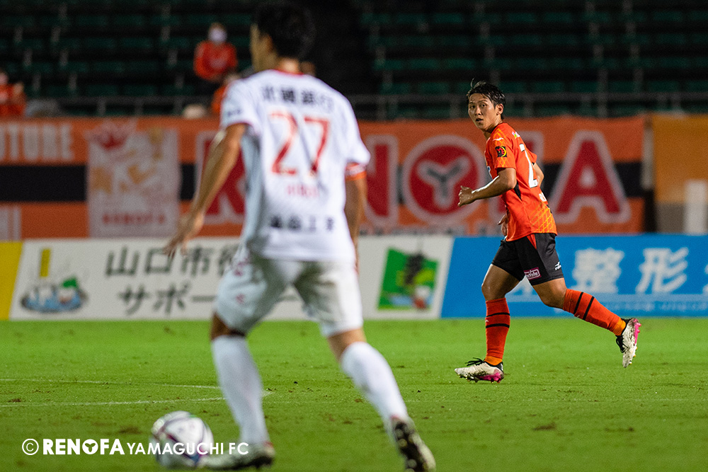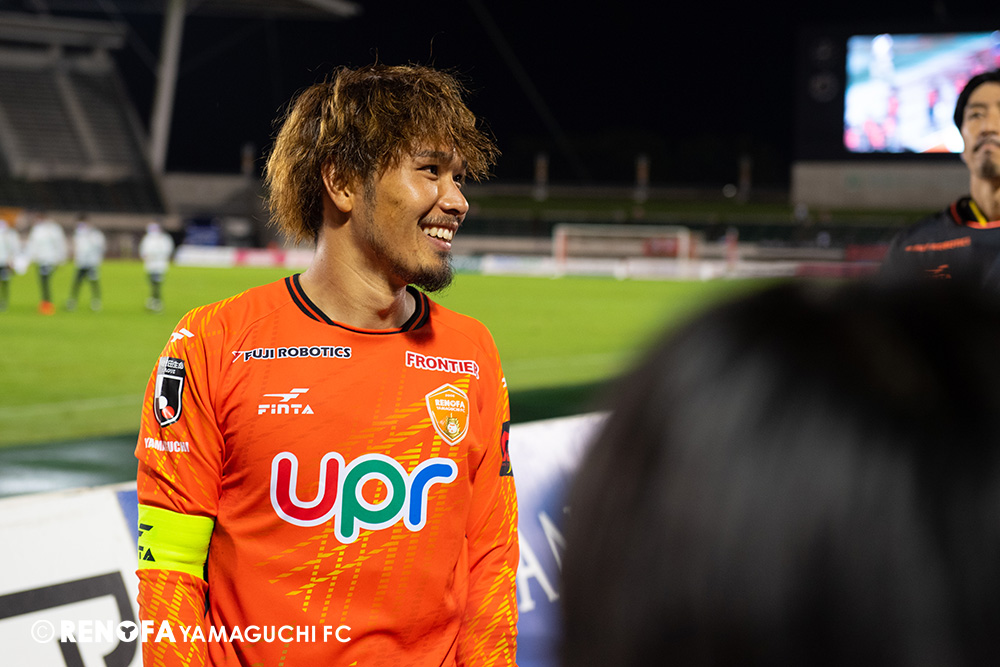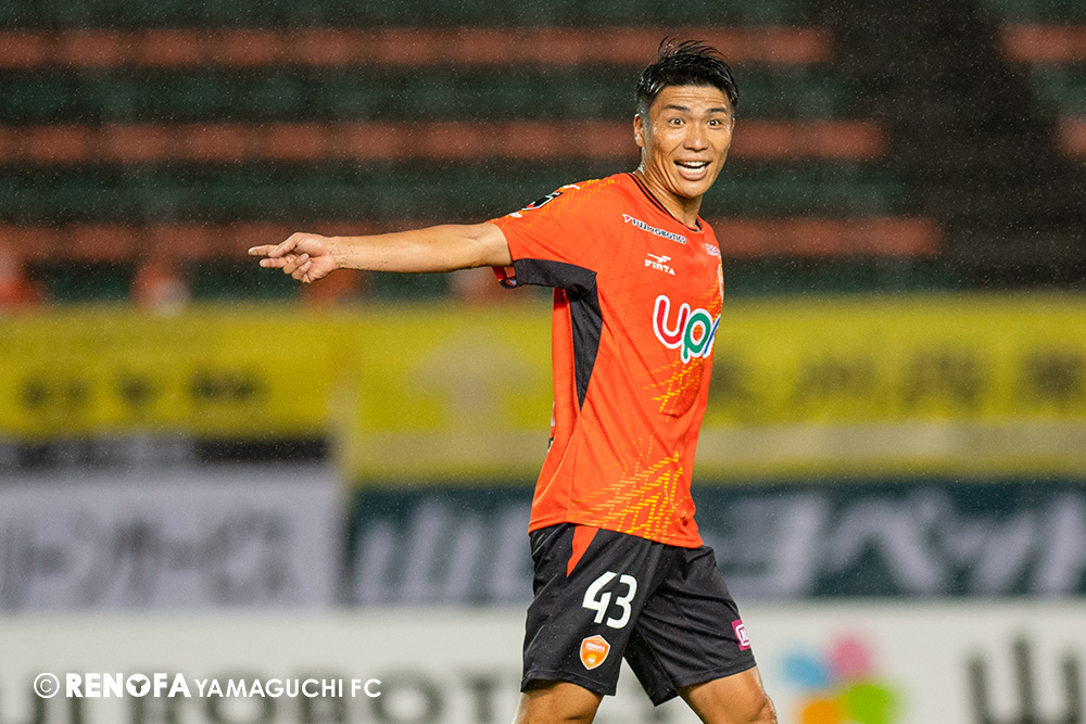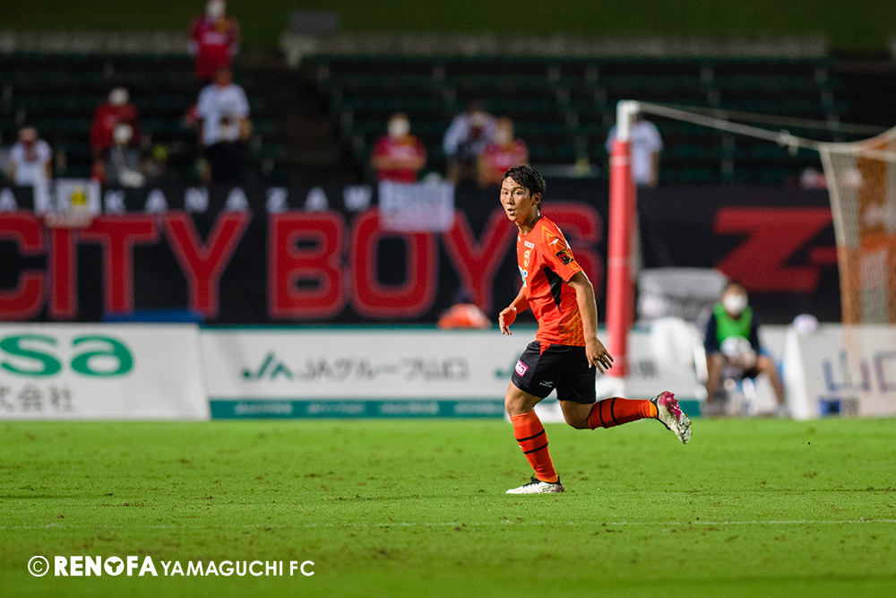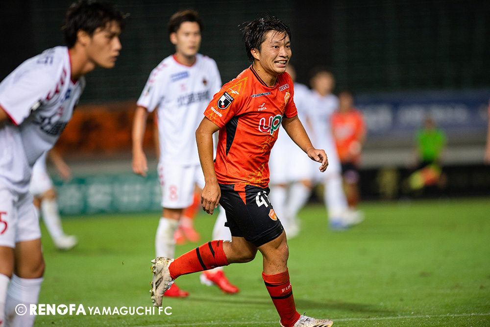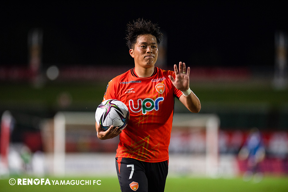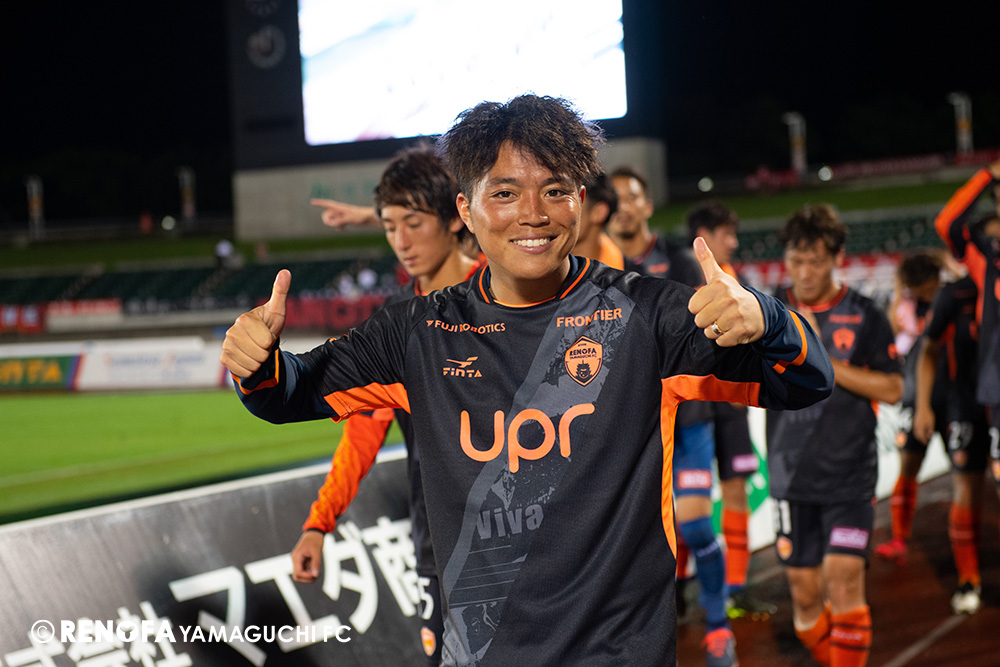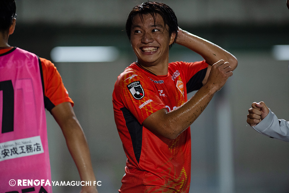 レノファに来て初めてゴールを決めましたが、最初は入ったのかなという感じでした。スーパーゴールではなかったので、素直にめっちゃ嬉しいとは言えないものでしたが、あのようなゴールもどんどん決めることができたらチームも勝てると思います。自分のストロングポイントのミドルシュートも増やしていければと思います。