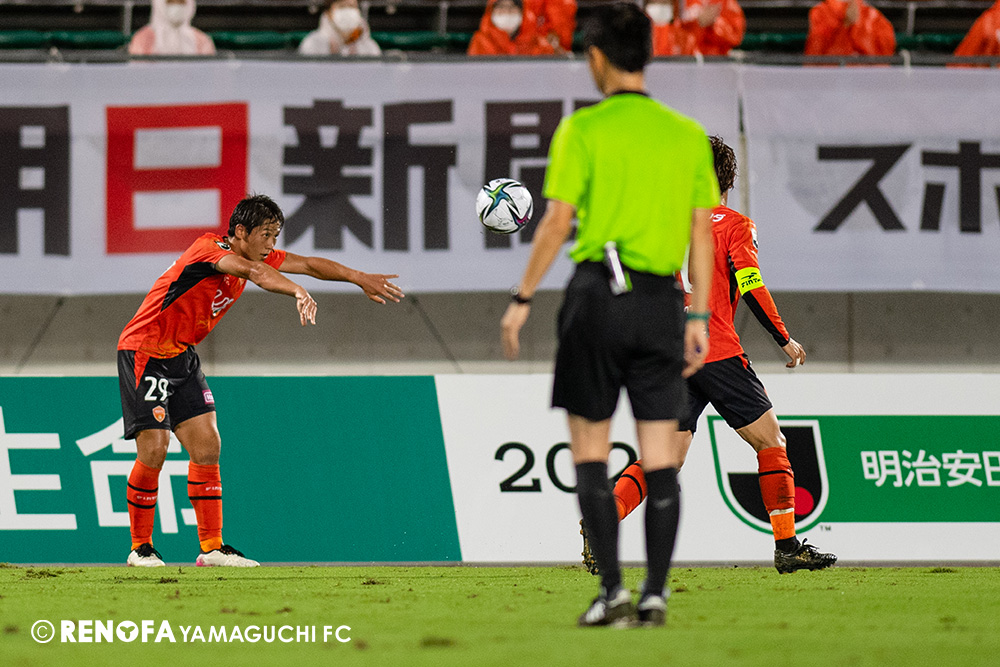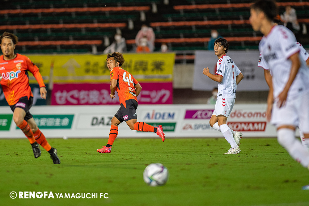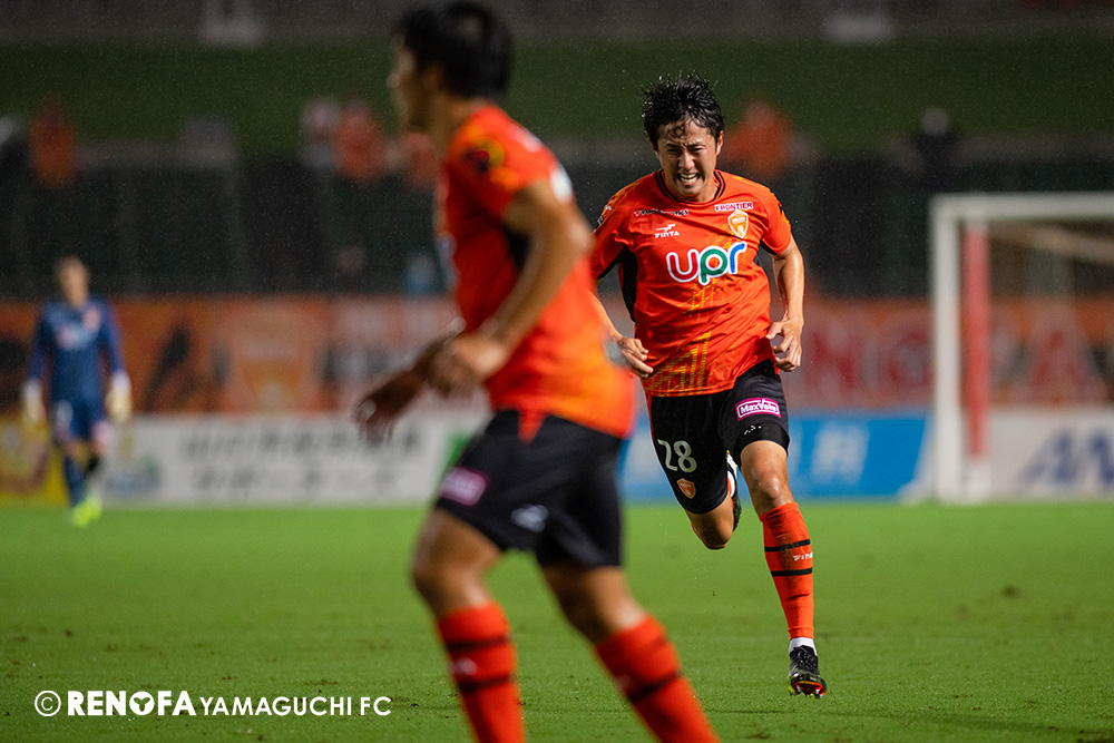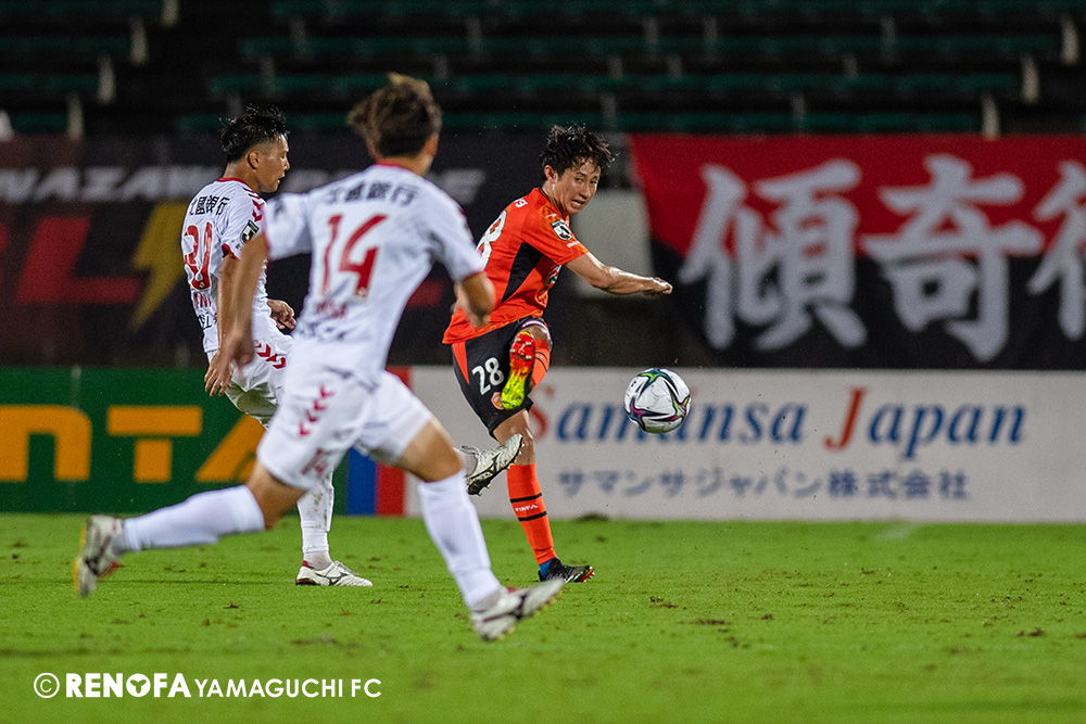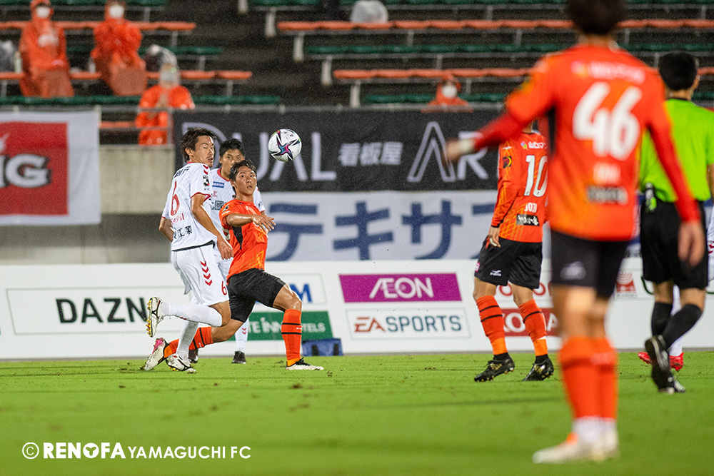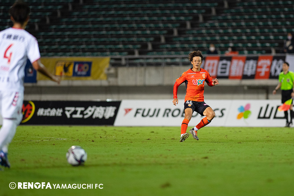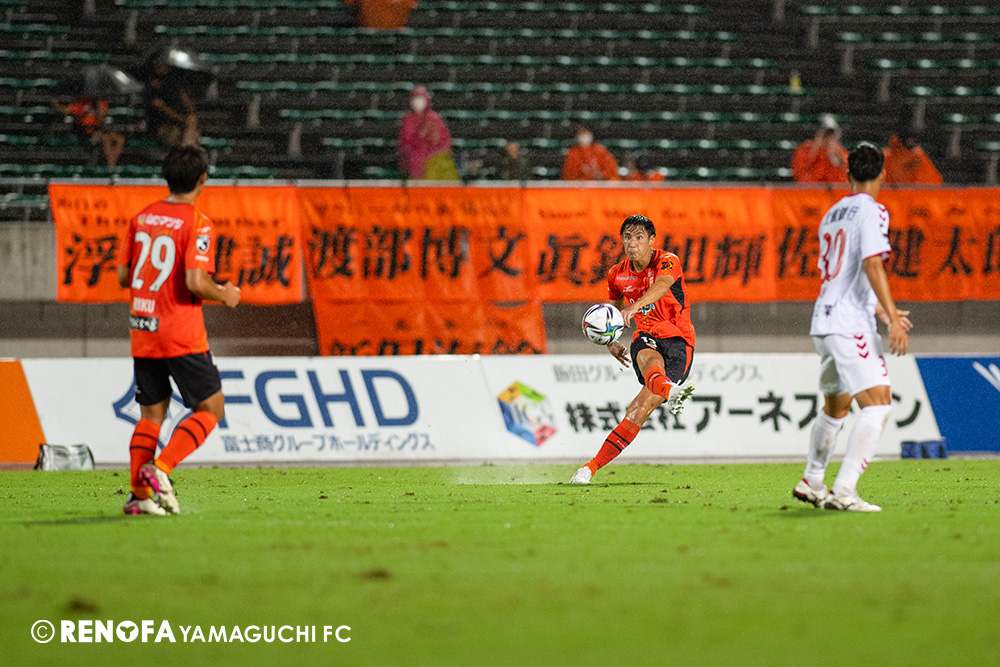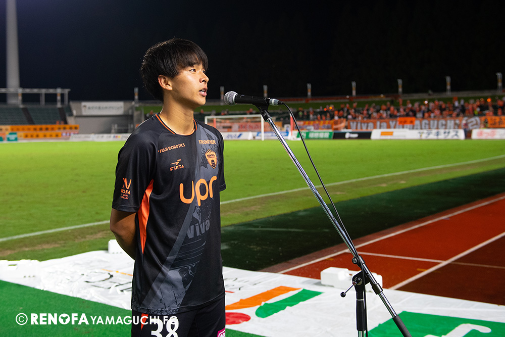 レノファに来て初めてゴールを決めましたが、最初は入ったのかなという感じでした。スーパーゴールではなかったので、素直にめっちゃ嬉しいとは言えないものでしたが、あのようなゴールもどんどん決めることができたらチームも勝てると思います。自分のストロングポイントのミドルシュートも増やしていければと思います。