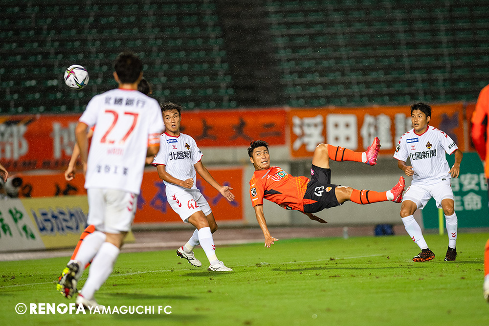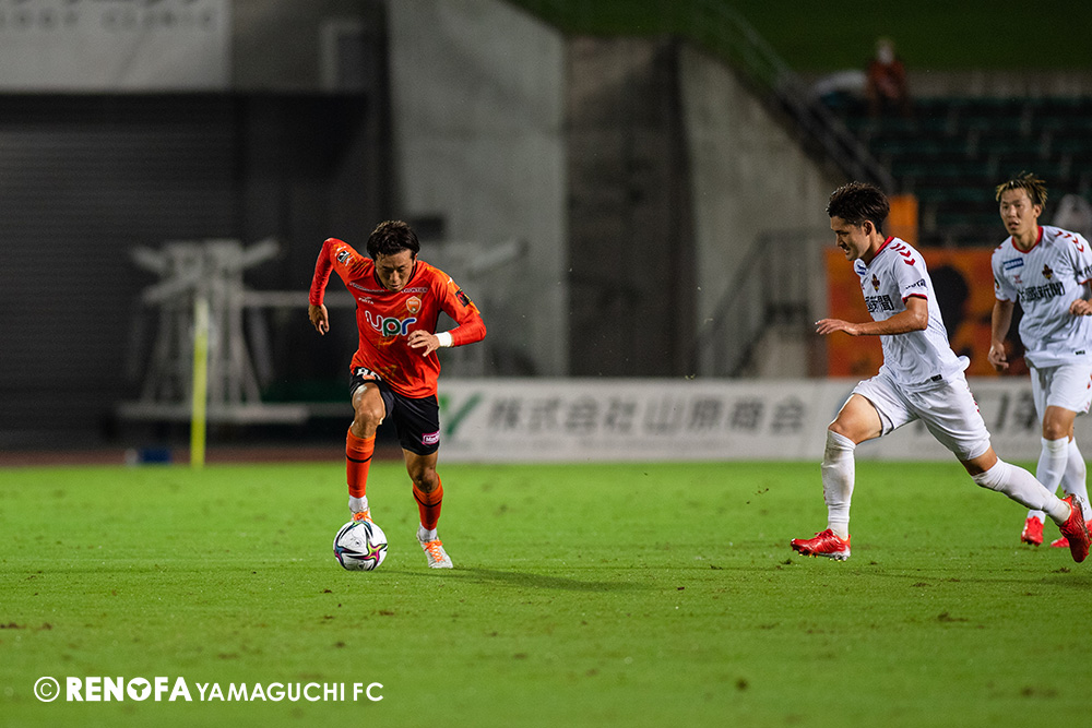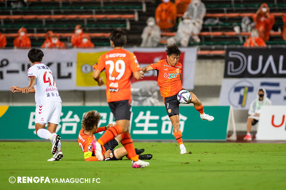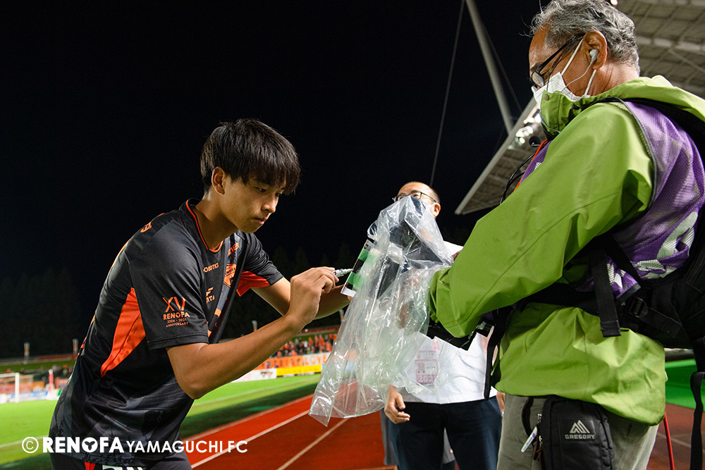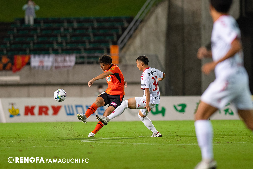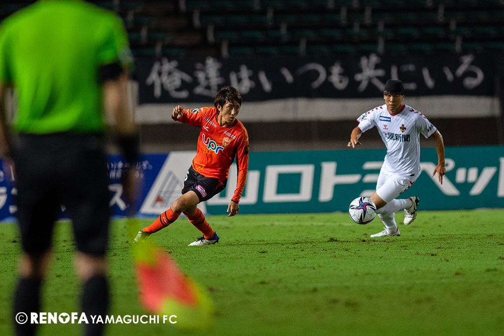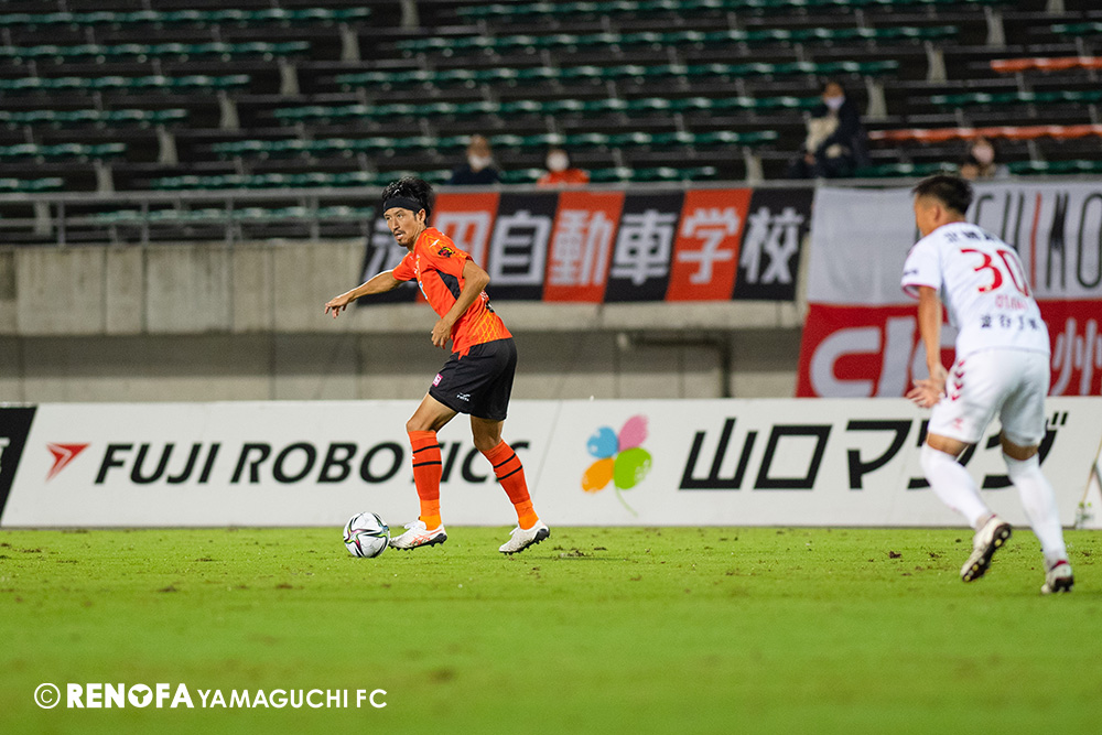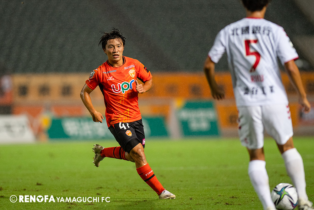 レノファに来て初めてゴールを決めましたが、最初は入ったのかなという感じでした。スーパーゴールではなかったので、素直にめっちゃ嬉しいとは言えないものでしたが、あのようなゴールもどんどん決めることができたらチームも勝てると思います。自分のストロングポイントのミドルシュートも増やしていければと思います。